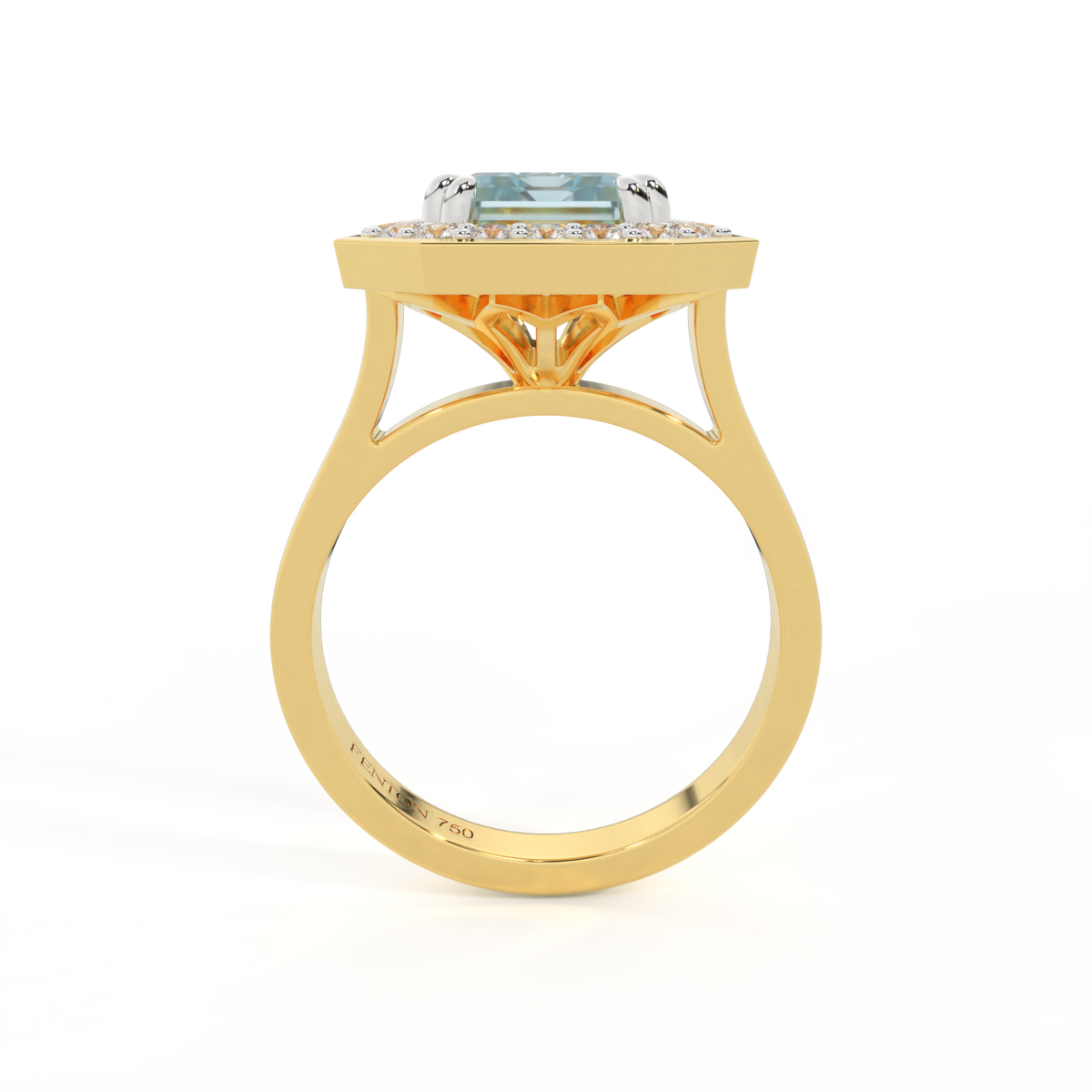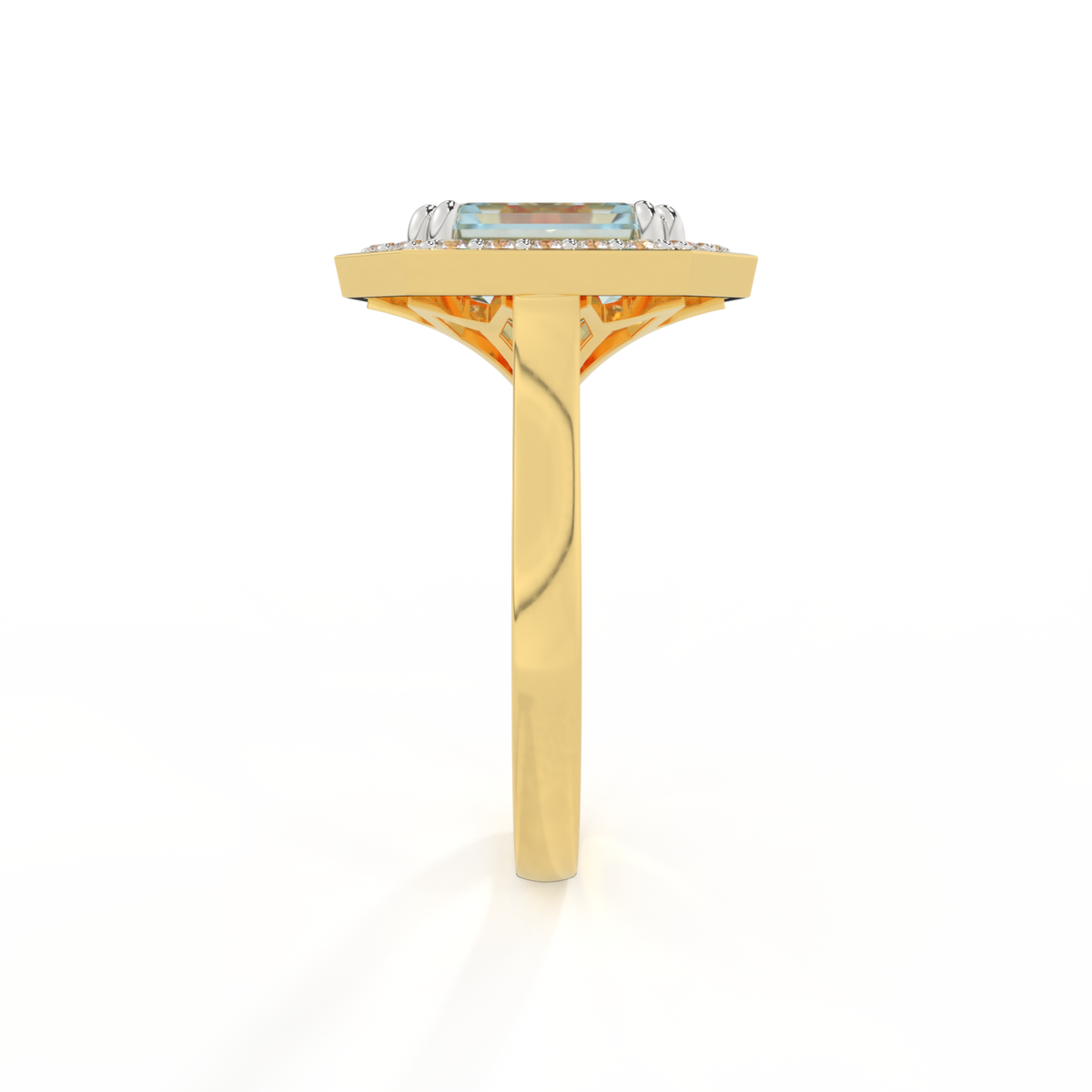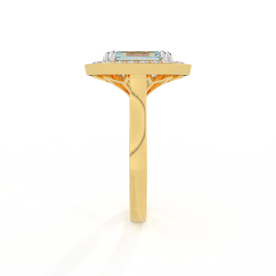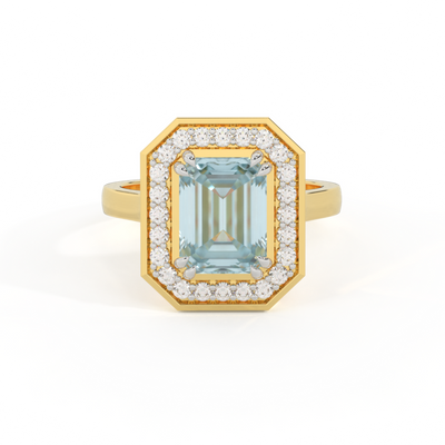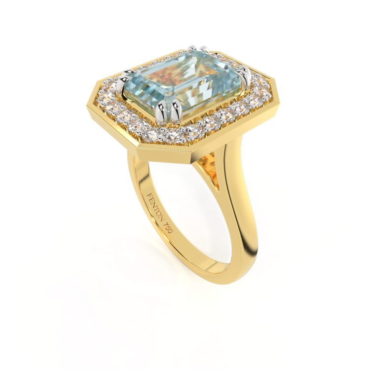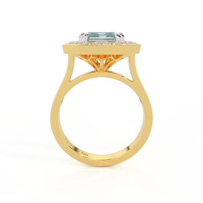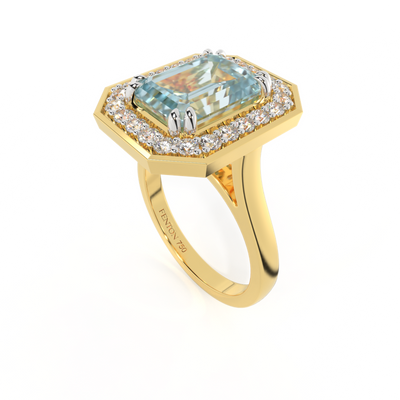 Deco Emerald Aquamarine 18K Yellow Gold Ring