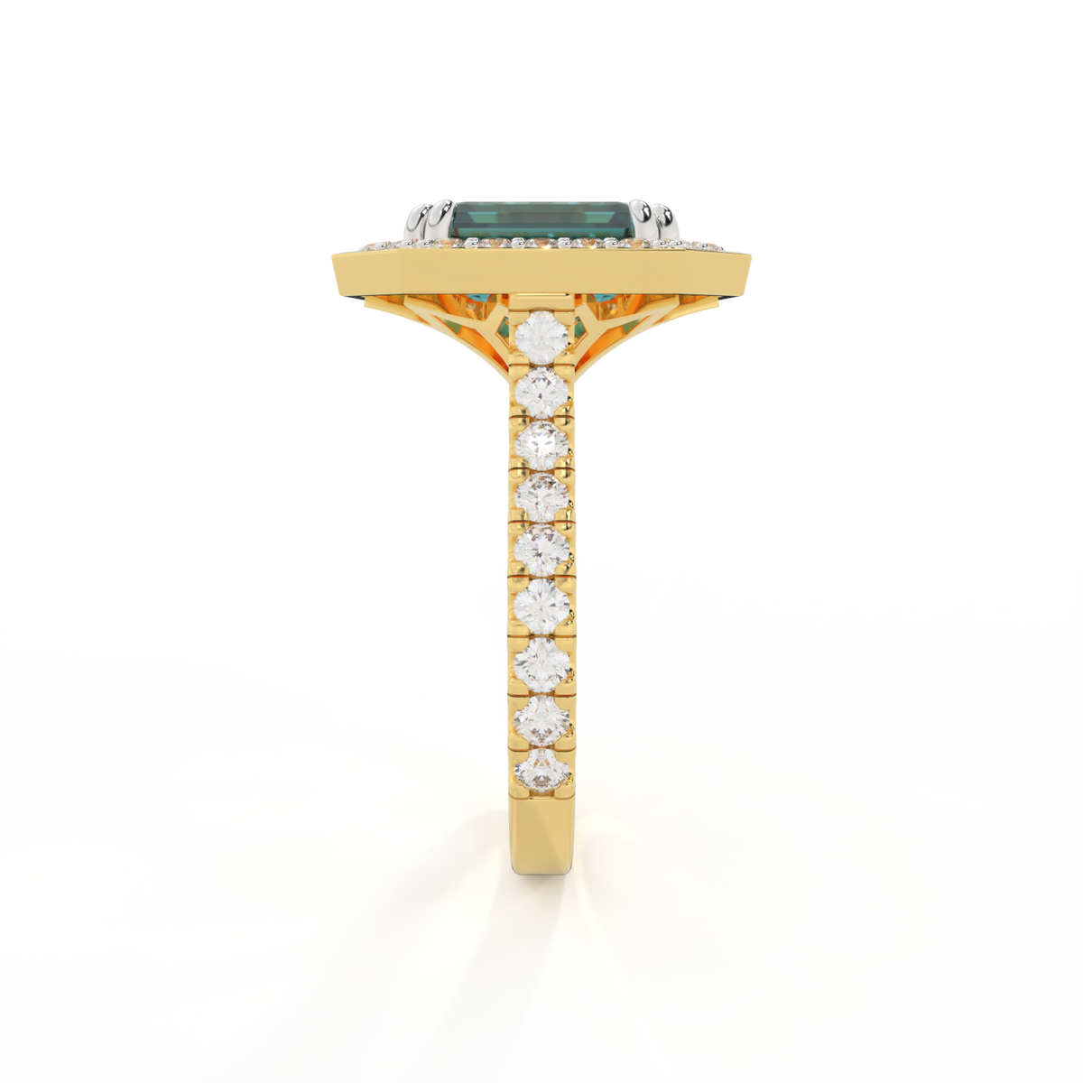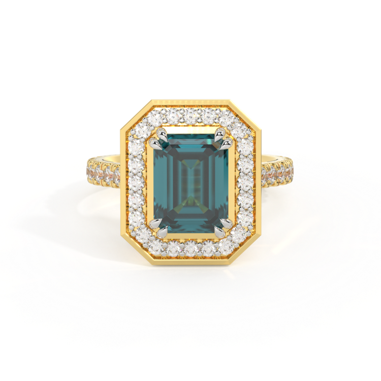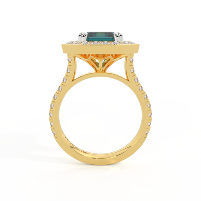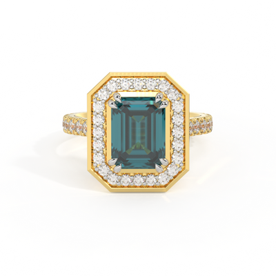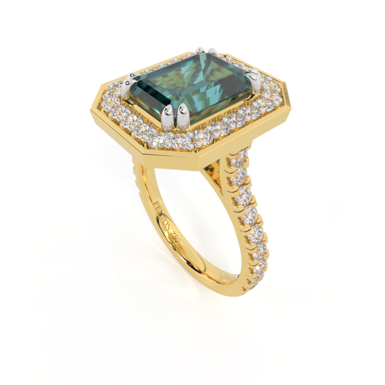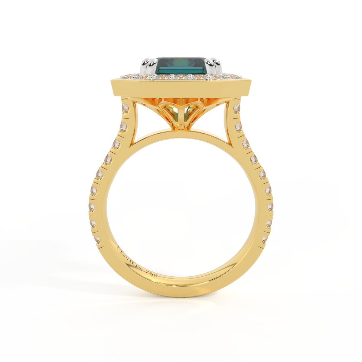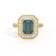 Deco Emerald Teal Sapphire 18K Yellow Gold Ring