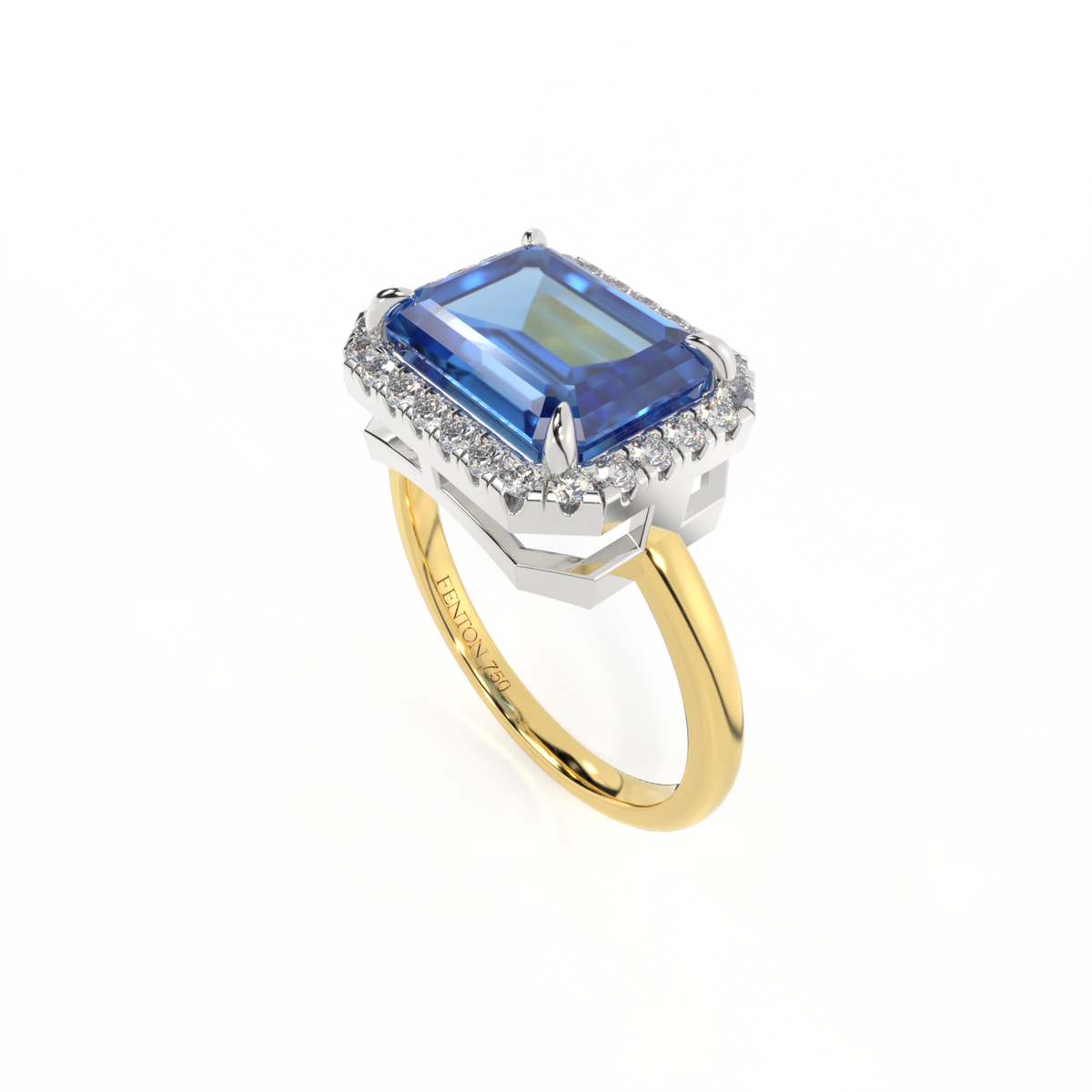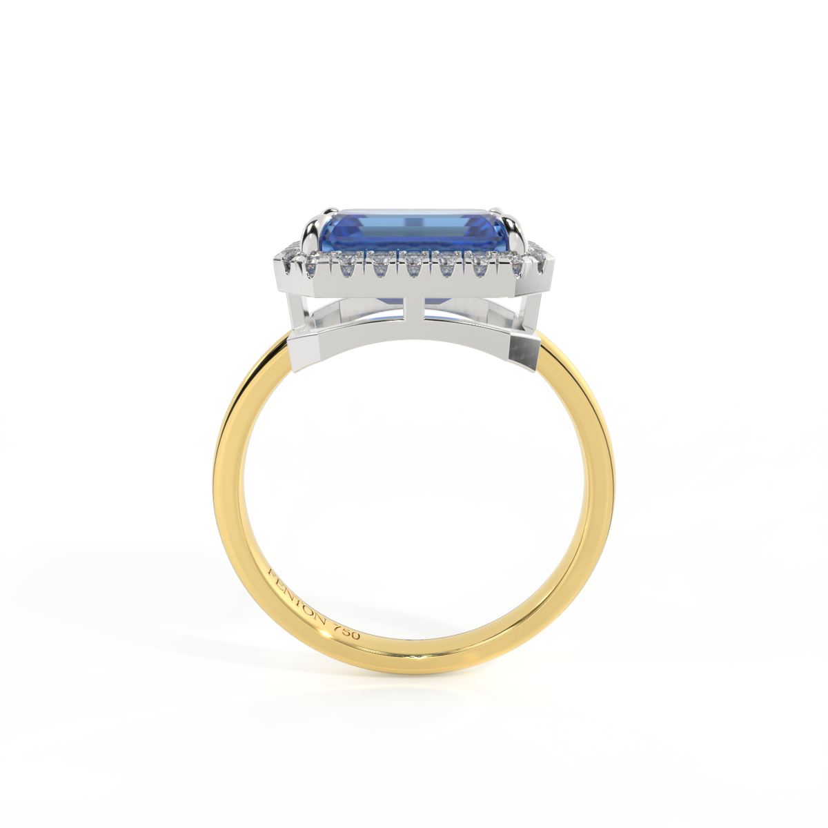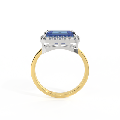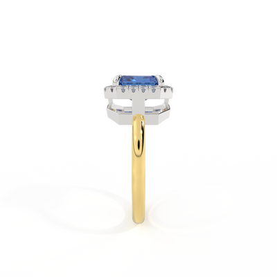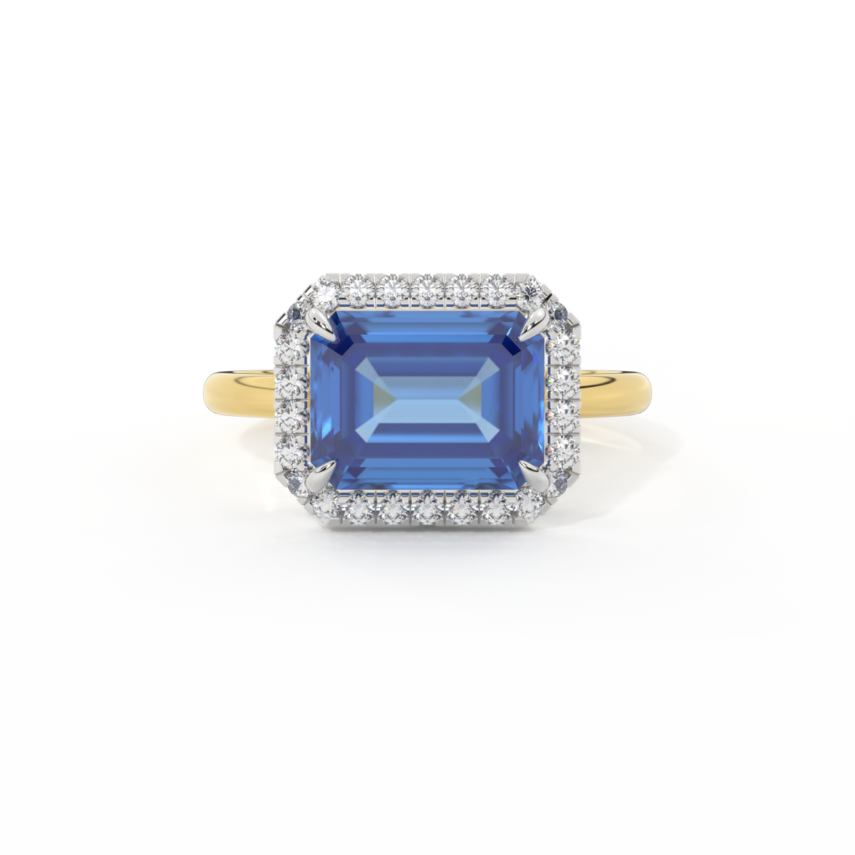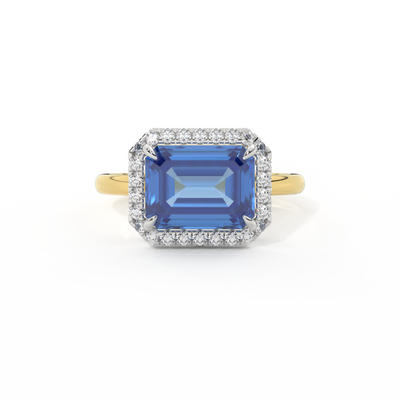 East West Emerald Blue Sapphire 18K Yellow Gold Ring