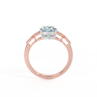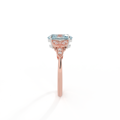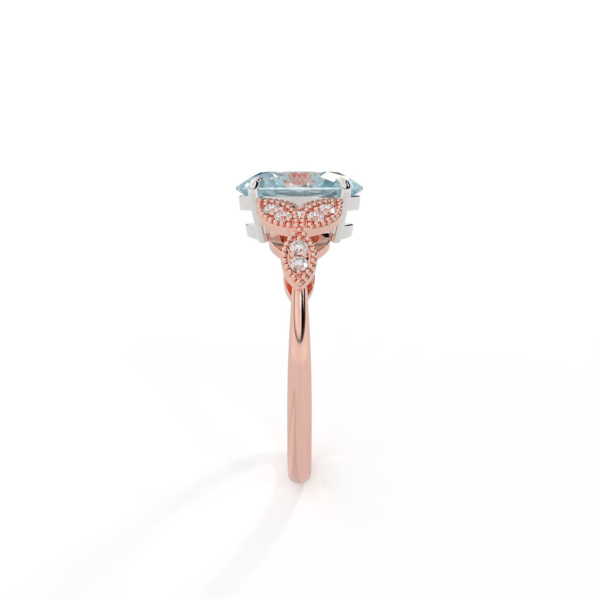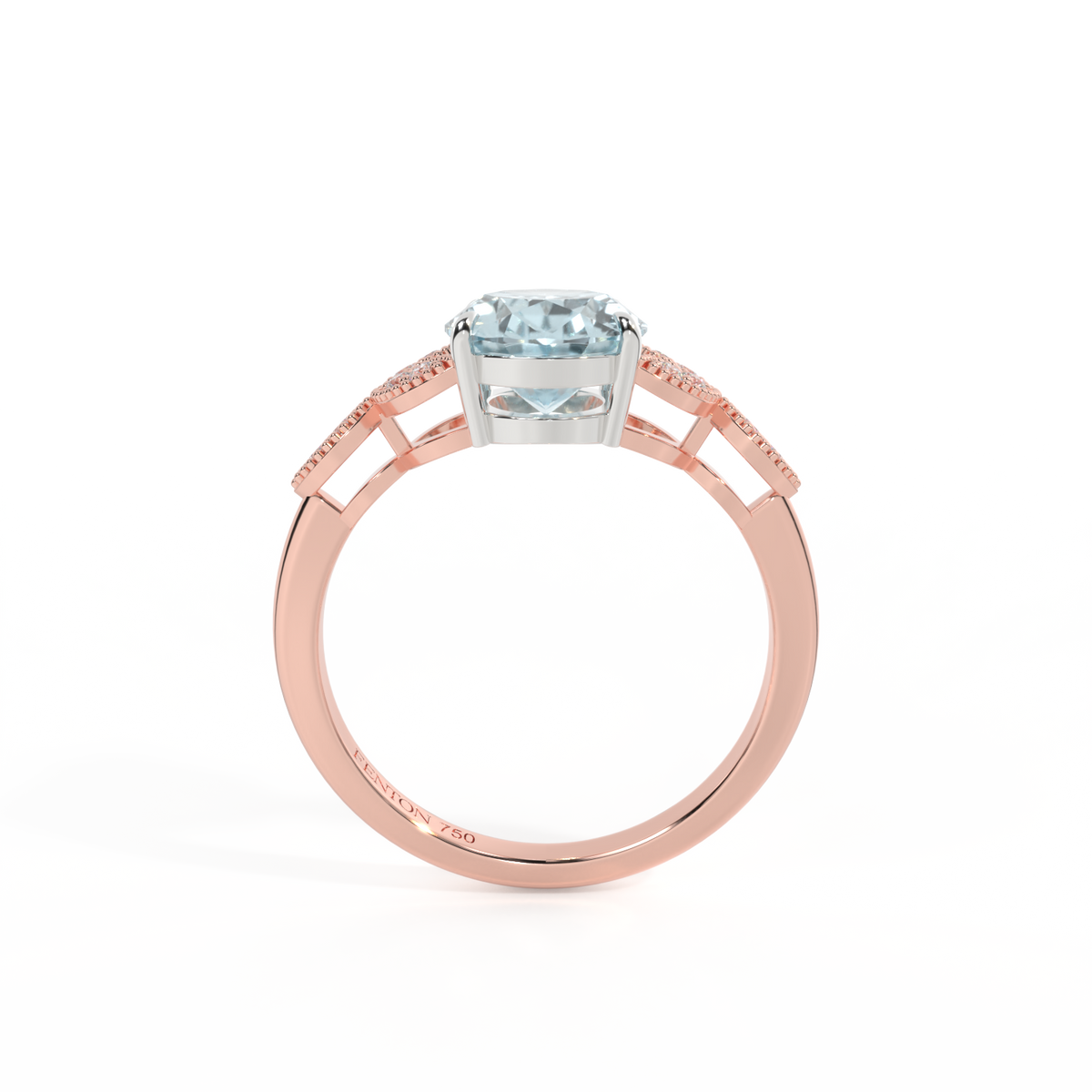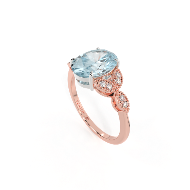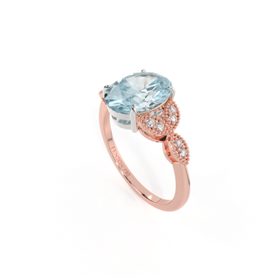 Floral Oval Aquamarine 18K Rose Gold Ring