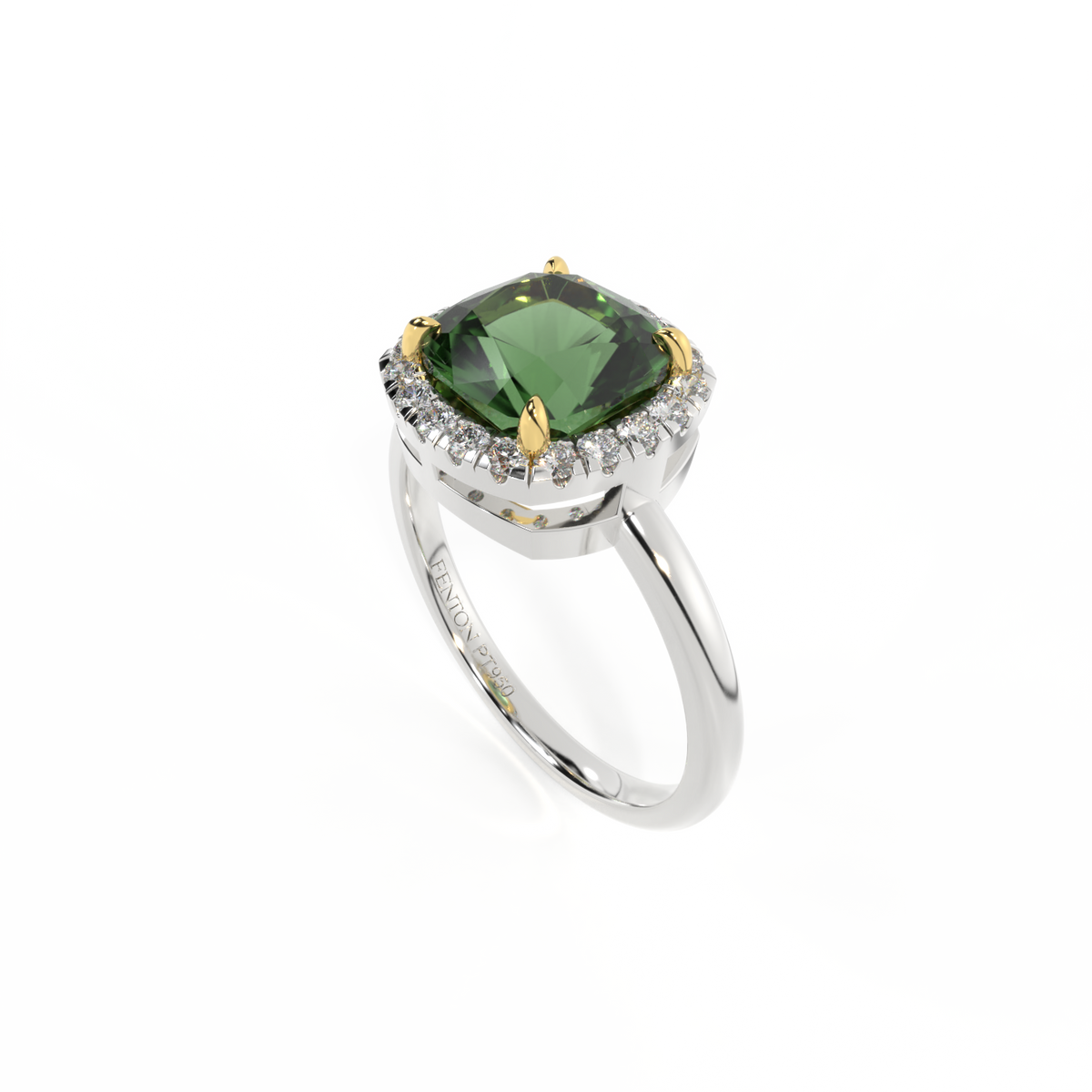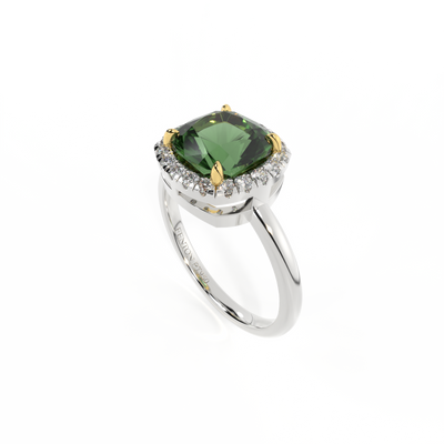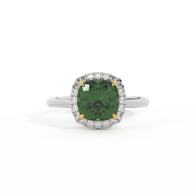 All of our rings are available in blue sapphire, green sapphire, emerald, pink sapphire, yellow sapphire and aquamarine. We offer three metals, 18K rose gold, 18K yellow gold and platinum. The centre stones are available in four cuts, round, cushion, oval and emerald cut and five sizes for each cut and style.
