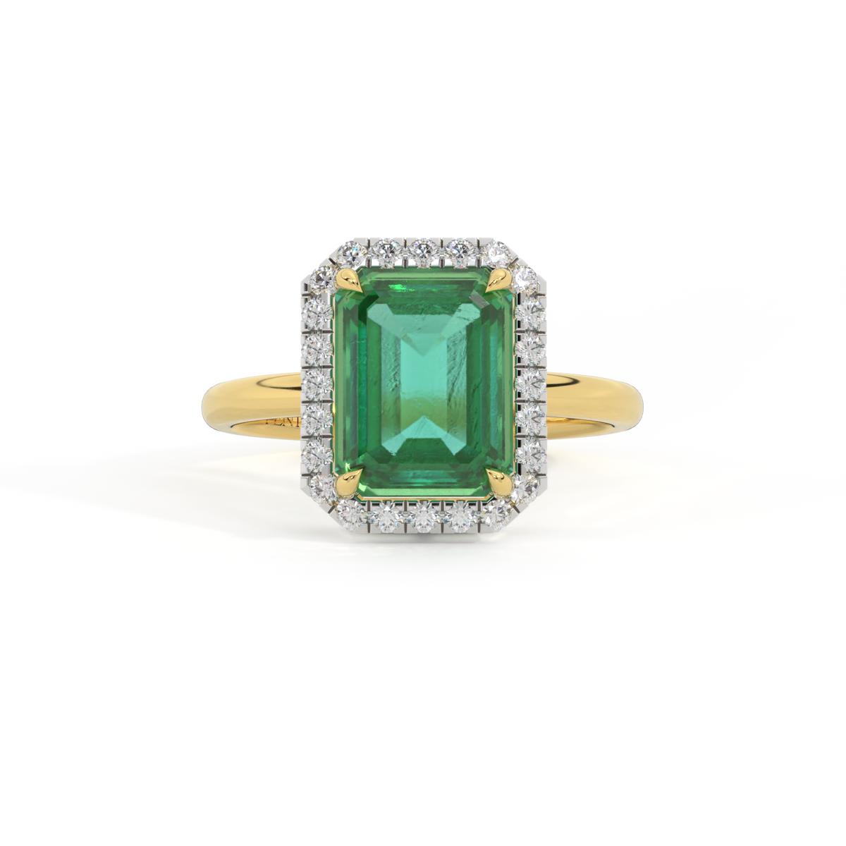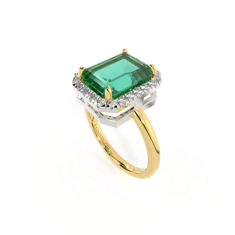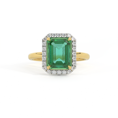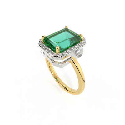 Halo Emerald Emerald 18K Yellow Gold Ring