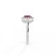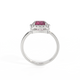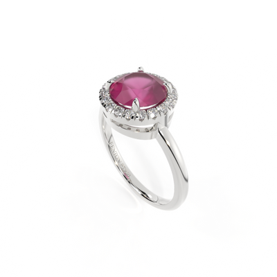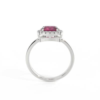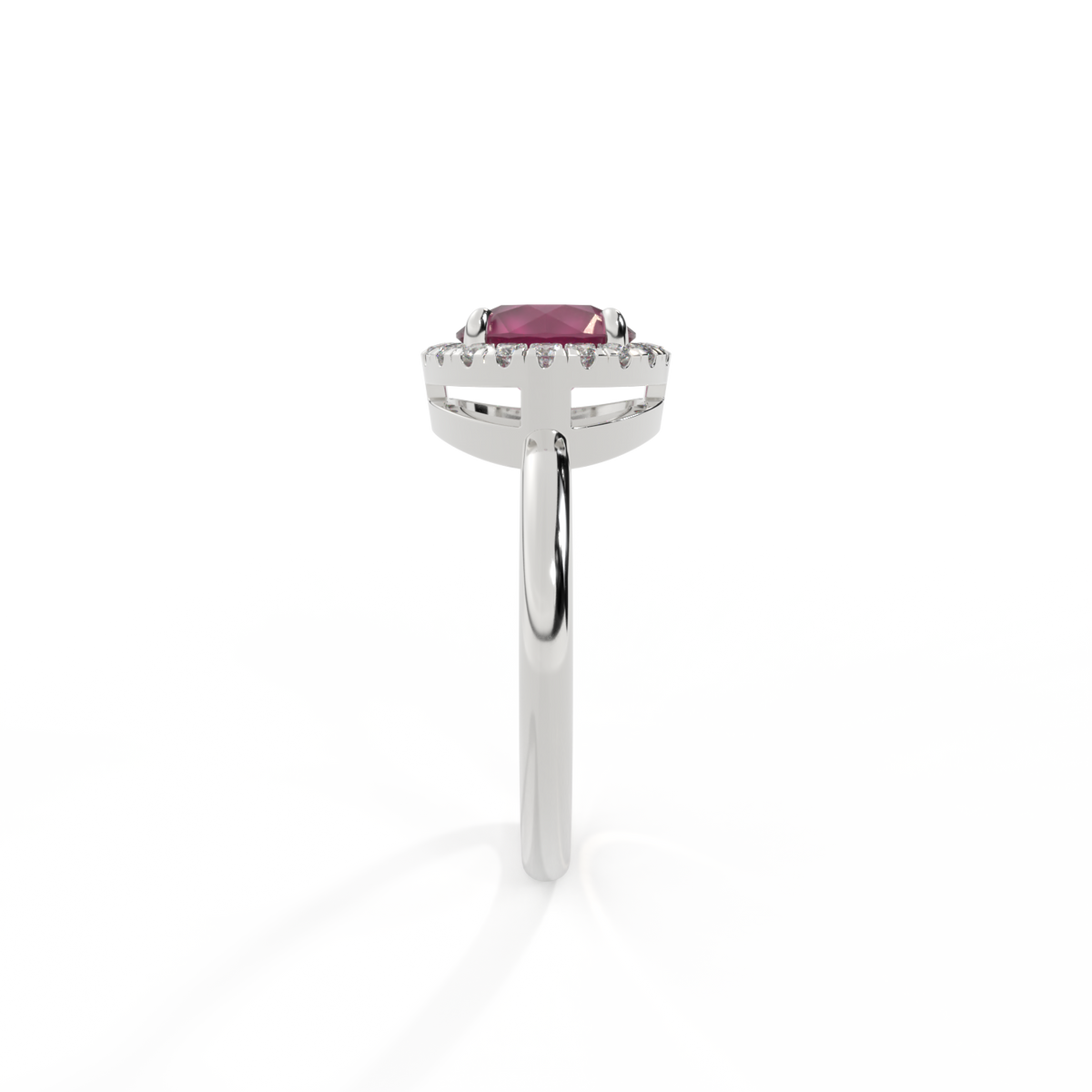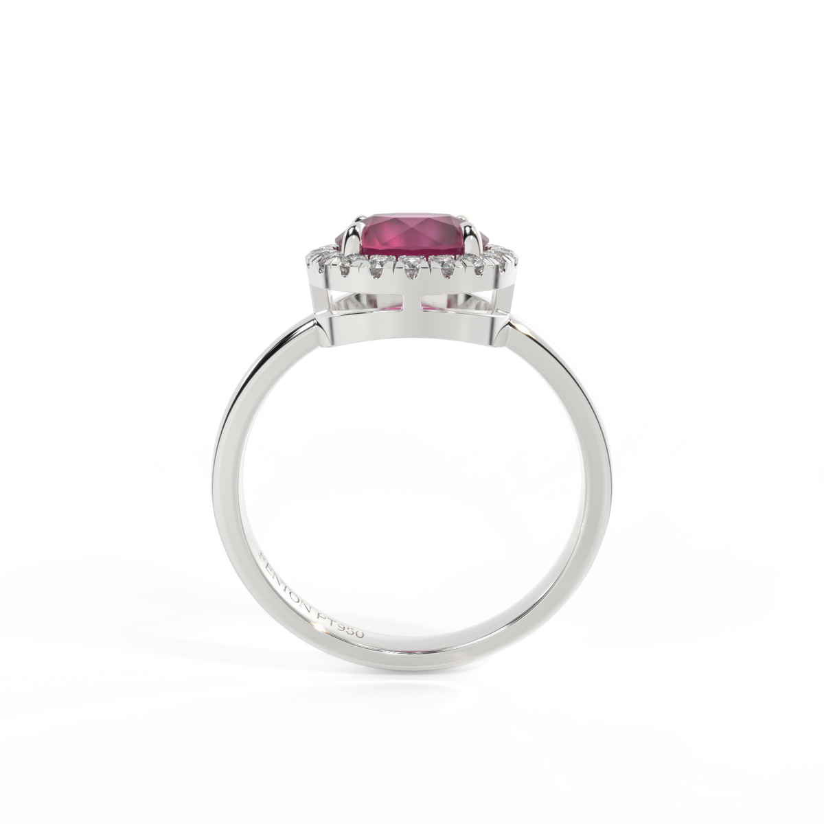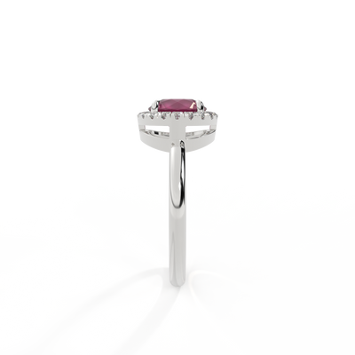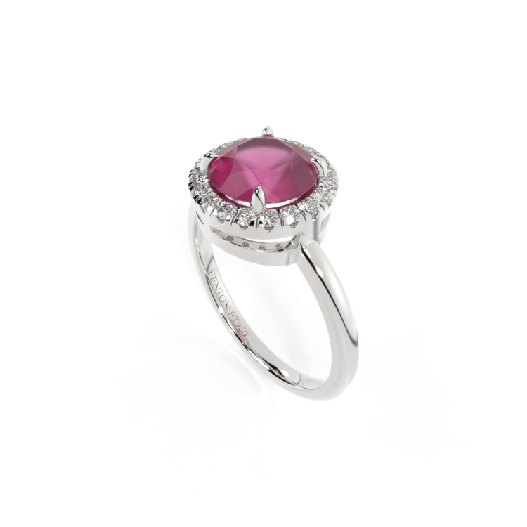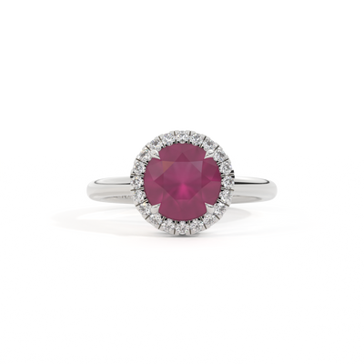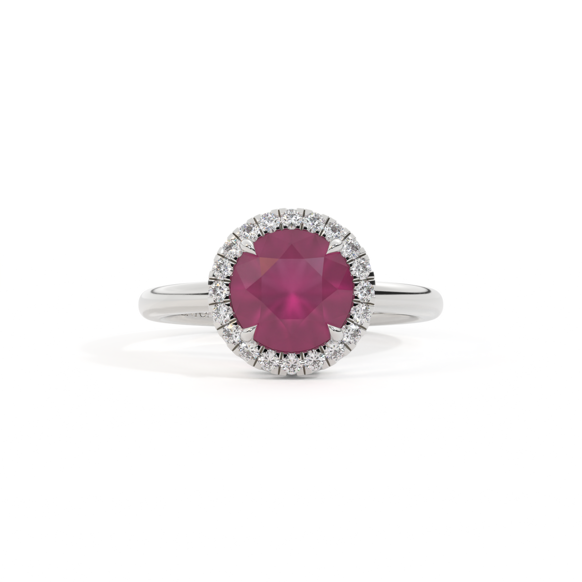 All of our rings are available in blue sapphire, ruby, emerald, pink sapphire, yellow sapphire and aquamarine. We offer three metals, 18K rose gold, 18K yellow gold and platinum. The centre stones are available in four cuts, round, cushion, oval and emerald cut and five sizes for each cut and style.
