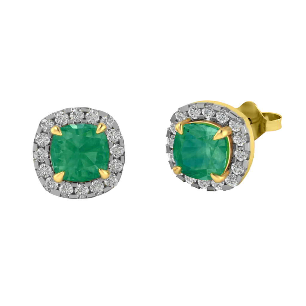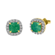 Halo Stud Cushion Emerald 18K Yellow Gold Earrings