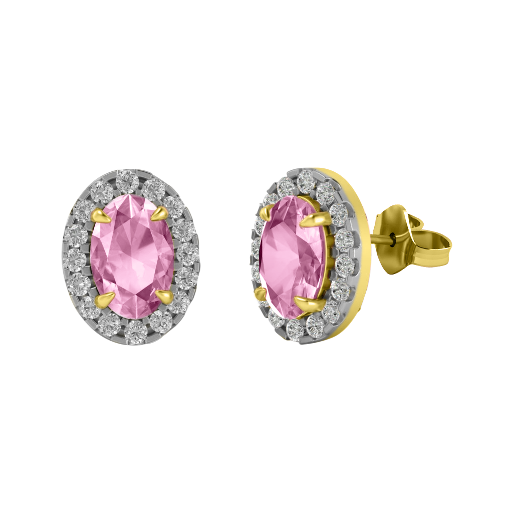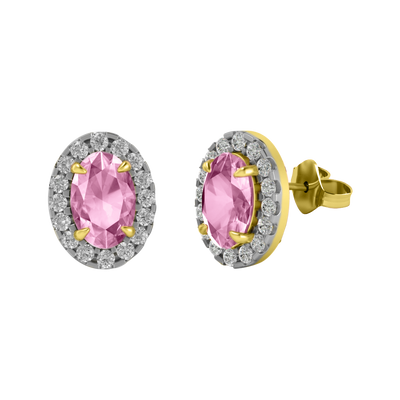 Halo Stud Oval Pink Sapphire 18K Yellow Gold Earrings