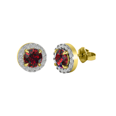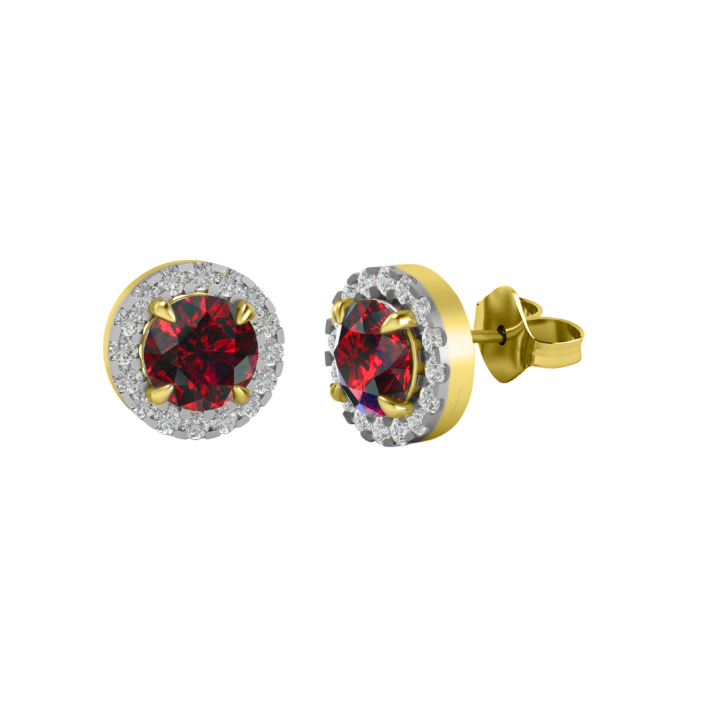 Halo Stud Round Garnet 18K Yellow Gold Earrings