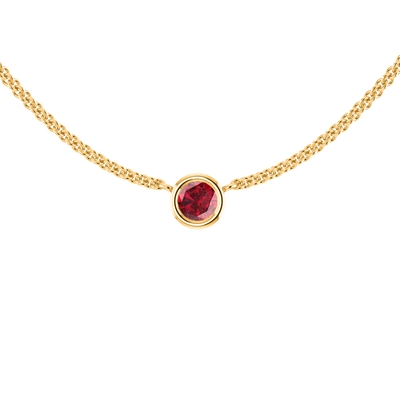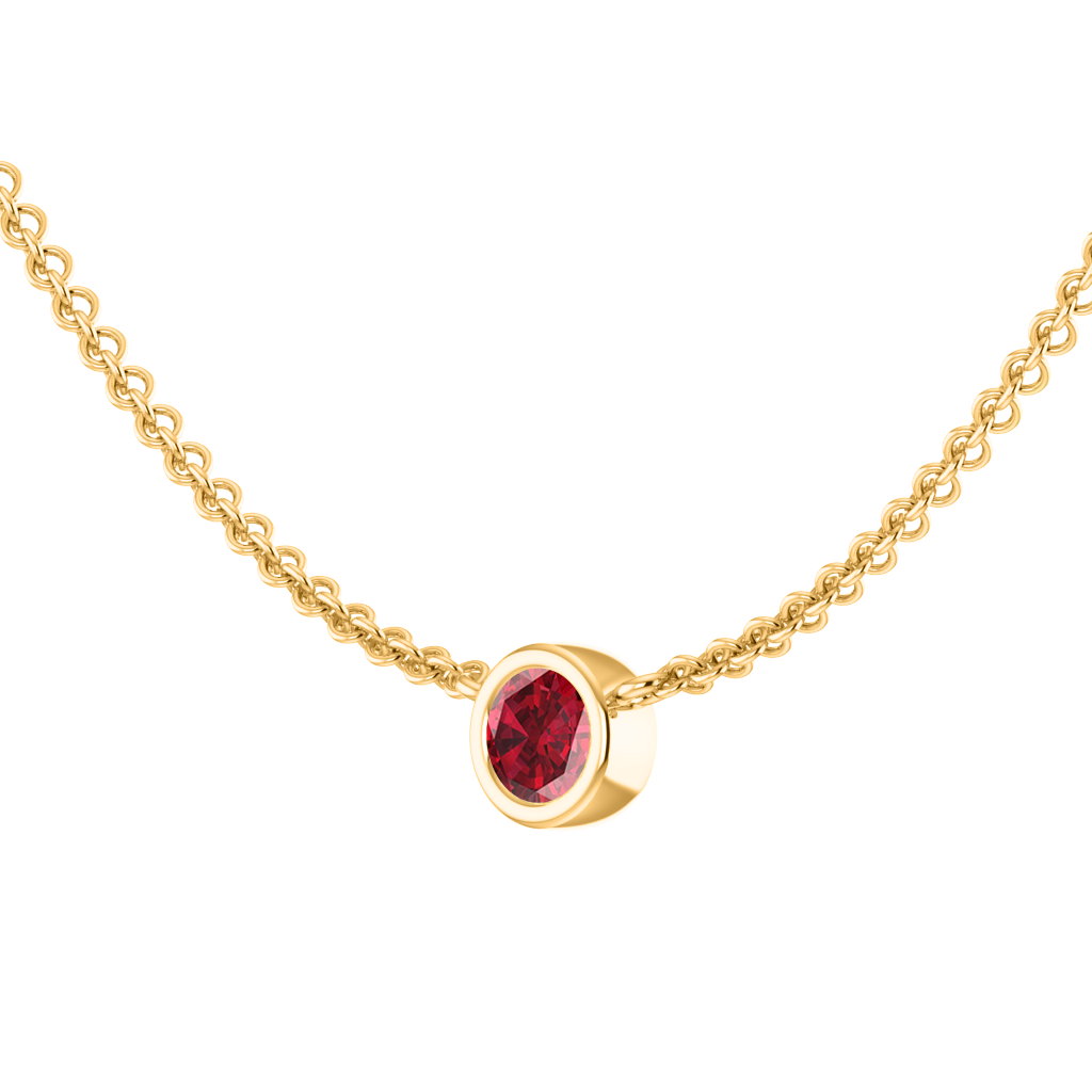 Bring that special sparkle front and centre with The Little Bezel Necklace, a classic design that belongs into every jewellery collection. Crafted from 18K Yellow Gold, this necklace features a 3.5mm round-cut Ruby in a subtle but modern bezel setting, giving the impression of an elegantly floating centre stone. Set on an extendable 15” to 17” inch 18K Yellow Gold chain, it is the perfect design to wear solo or layer with your favourite necklace designs. The elegant aesthetic of this timeless necklace makes it the perfect jewellery gift for a special moment in time - if for yourself or that special someone. Complete the look with our matching Bezel Drop Earrings, The Bezel Seven Stone Necklace and The Bezel Ring.