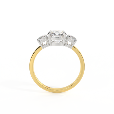 Proof that three isn't always a crowd, our Naturally Mined Diamond Trilogy Ring unites a sparkling Naturally Mined Diamond centre stone with two surrounding Diamond each set in a secure four single- or double claw setting and complimenting the exquisite sparkle of your Naturally Mined Diamond stone. Your Round Naturally Mined Diamond stone has a GH V/S quality rating and is set in a simple yet elegant gallery feeding smoothly into a sleek and simple 18K Yellow Gold band ranging from 1.90 - 2.20mm.