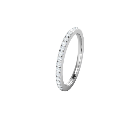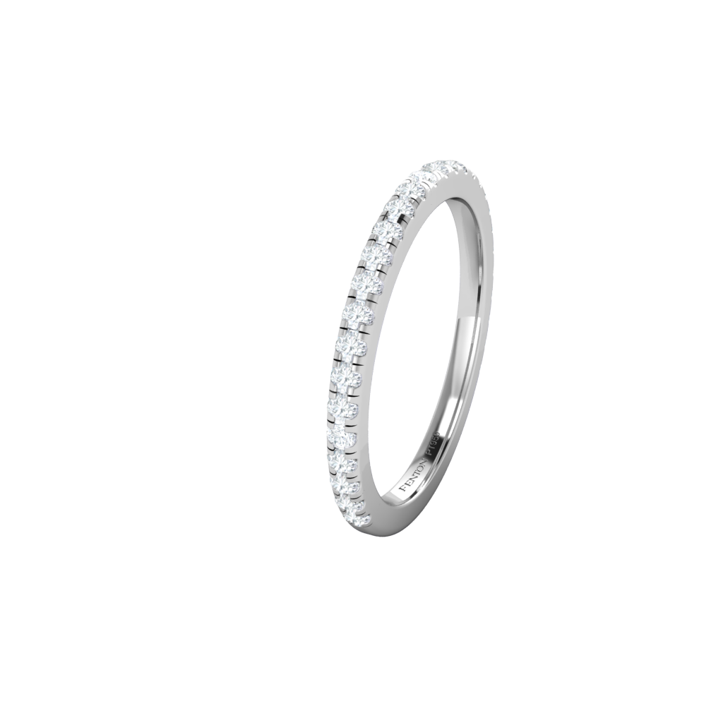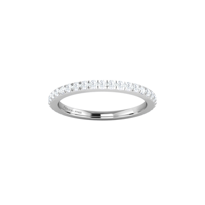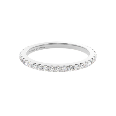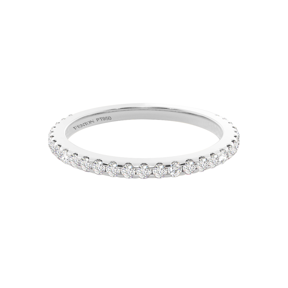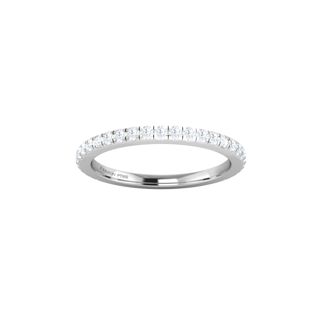 Putting a Fenton twist on a classic, meet the Eternity band in full colour. It's a beautiful ring worn solo or as a classic wedding band, stacked with your engagement ring. The Eternity band glistens with a string of round brilliant-cut Diamond stones and five G/H colour and VS clarity diamond accents for excellent brilliance. For extra comfort and durability, your stones cover 3/4 of your solid Platinum band.