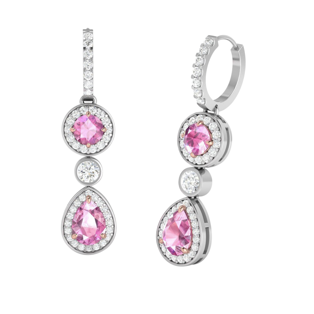 Pear Drop Round Pink Sapphire 18K White Gold Earrings
