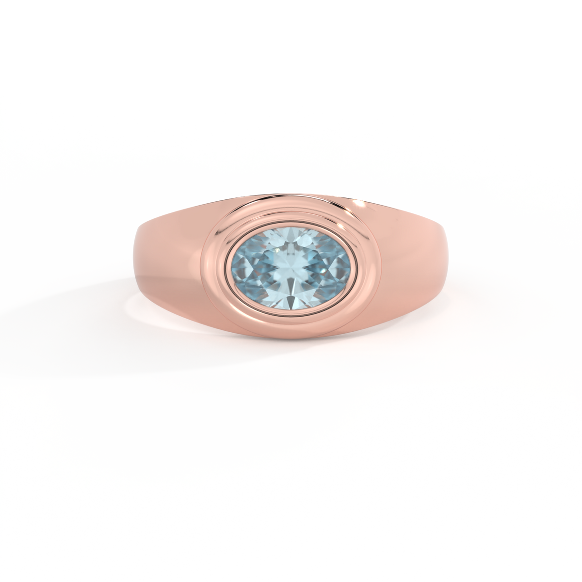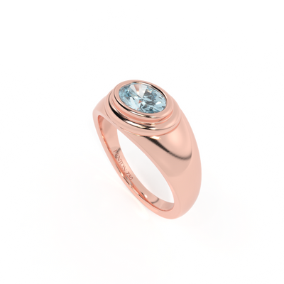 Signet Oval Aquamarine 18K Rose Gold Ring
