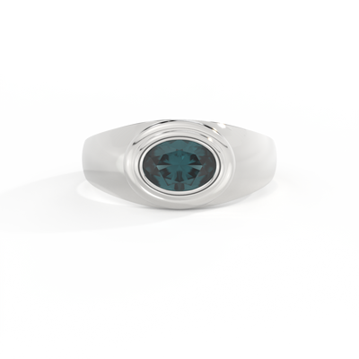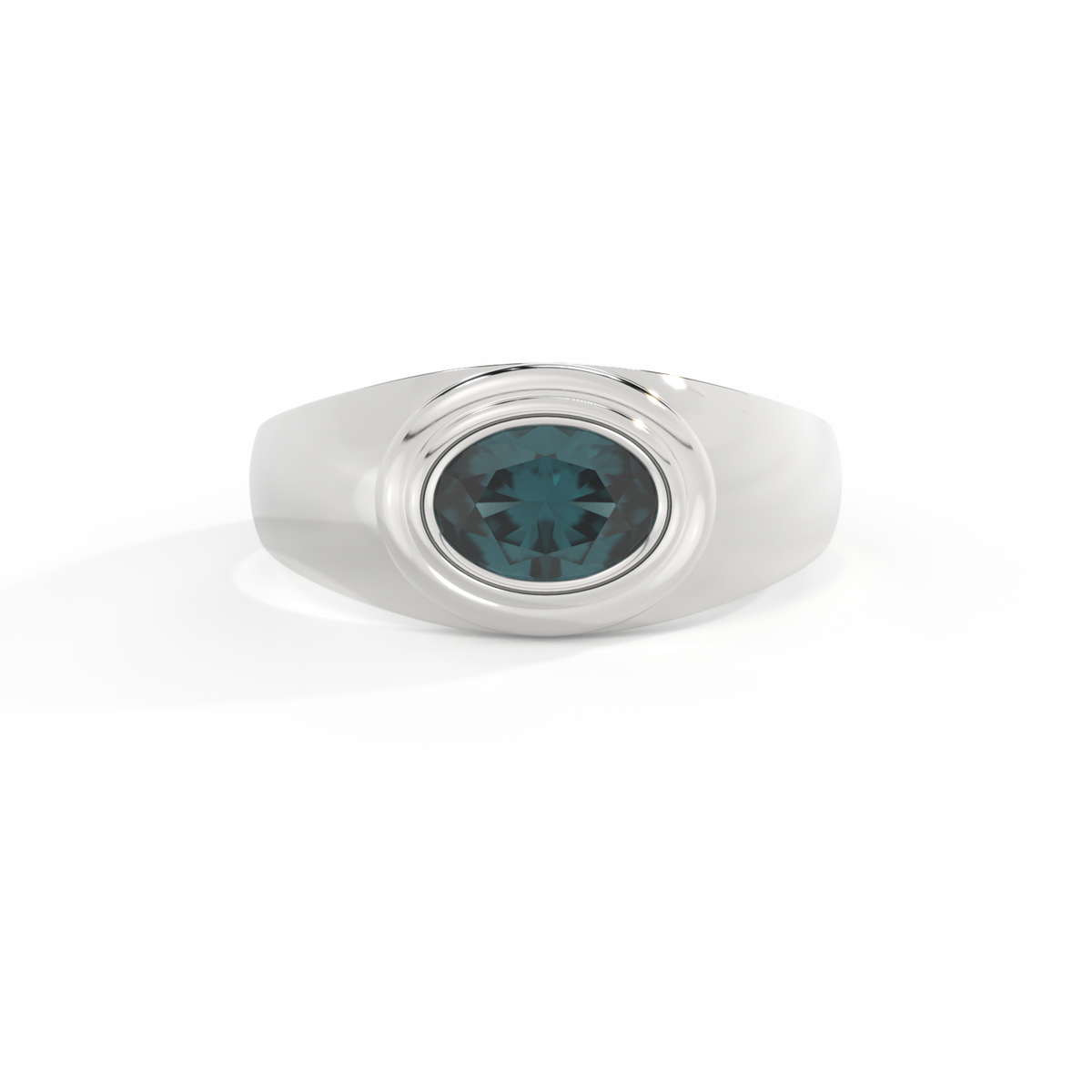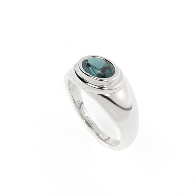 Signet Oval Teal Sapphire 18K White Gold Ring