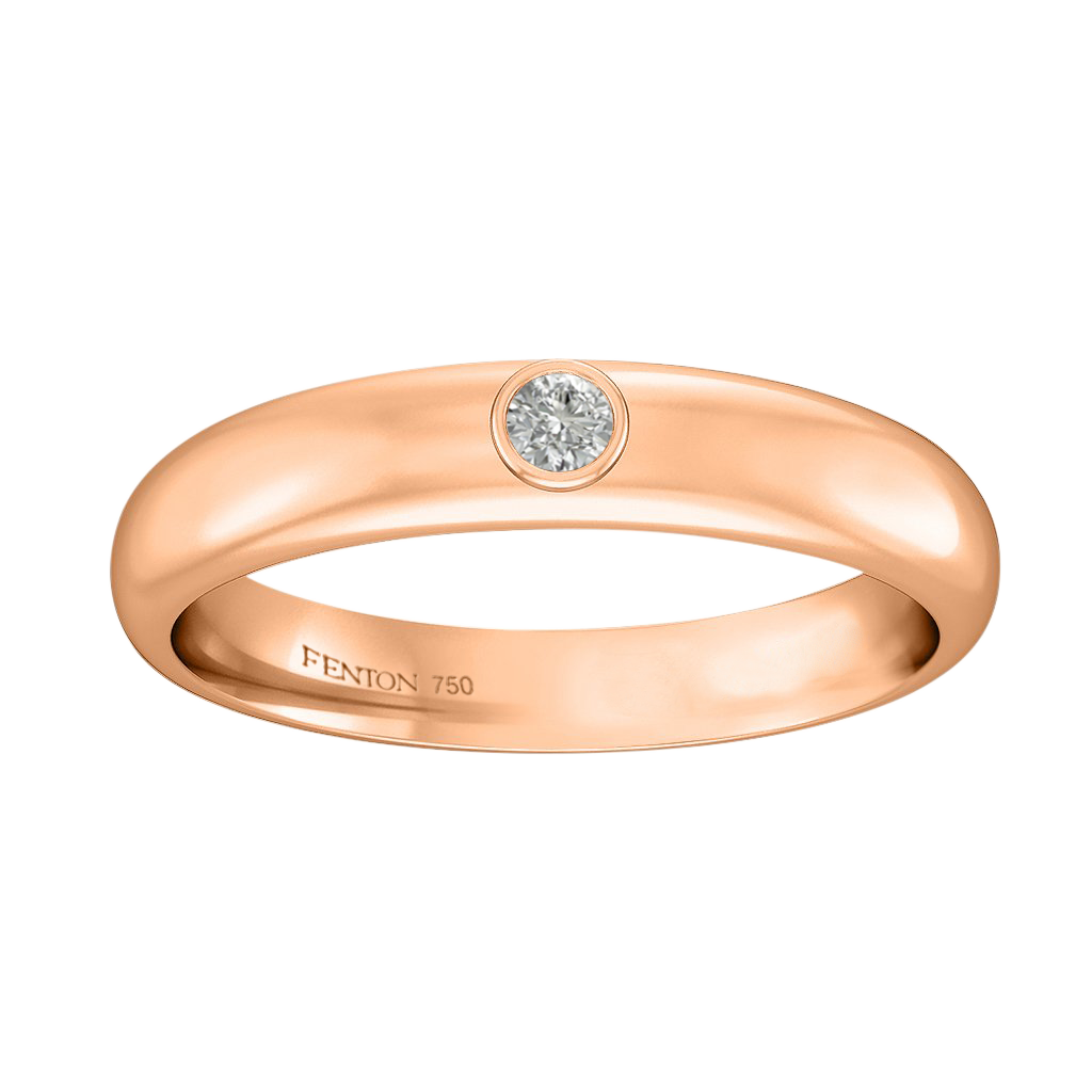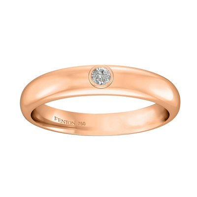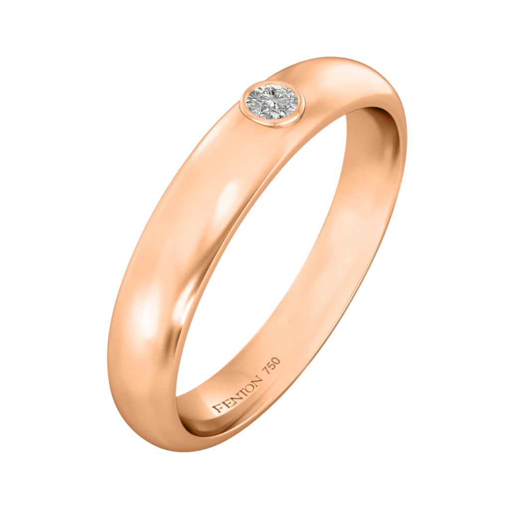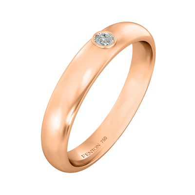 Match a single gemstone to your partner Fenton ring or add a twist to the classic rounded band with the Single Stone. This band is 4mm wide and made from 18K gold.