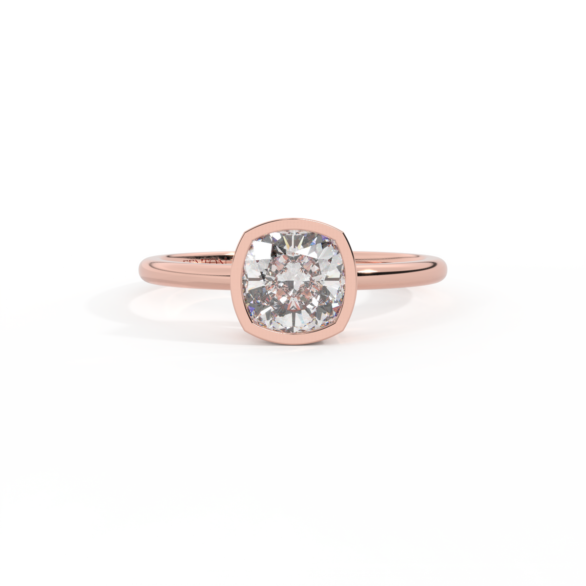 Lab Grown Solar Diamond Bezel Cushion Cut 18k Rose Gold Ring