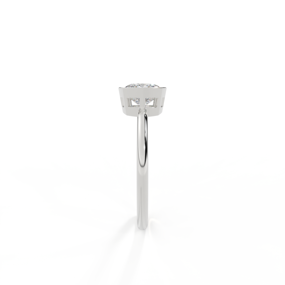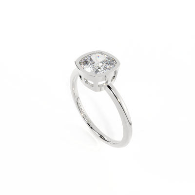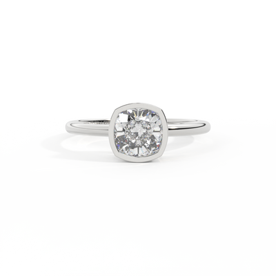 Lab Grown Solar Diamond Bezel Cushion Cut Platinum Ring