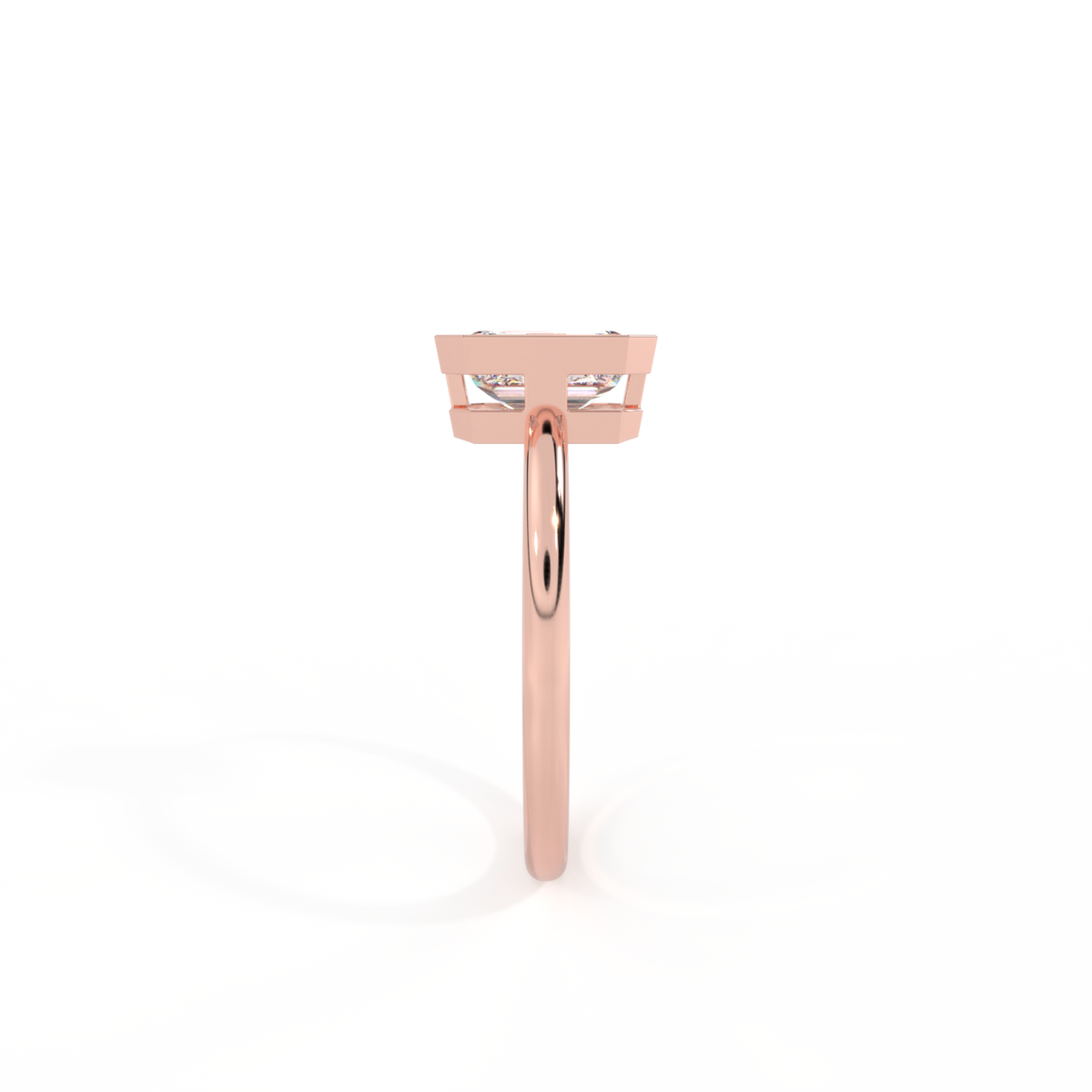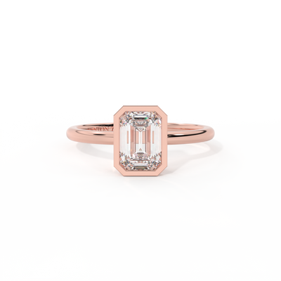 Lab Grown Solar Diamond Bezel Emerald Cut 18k Rose Gold Ring