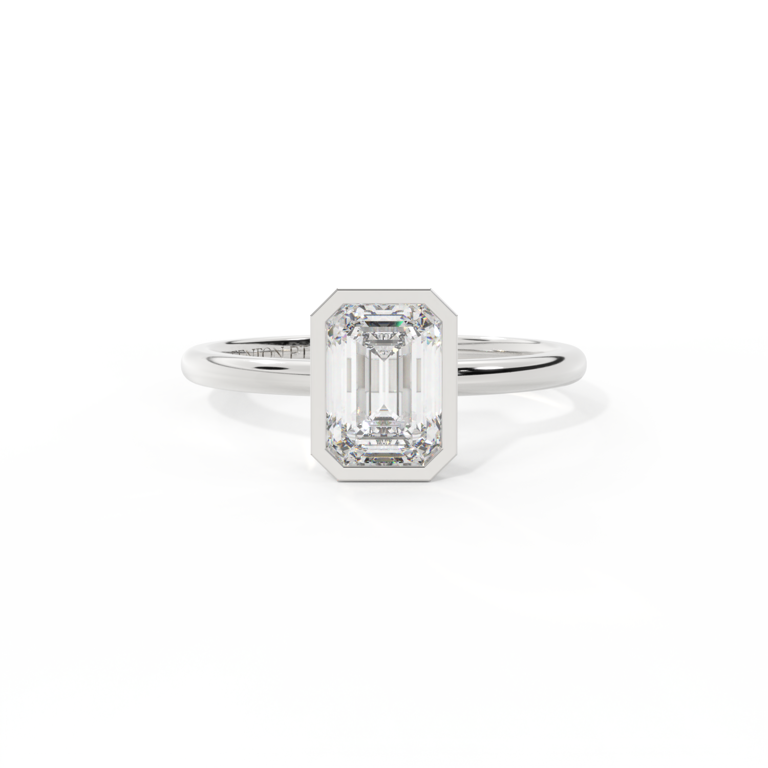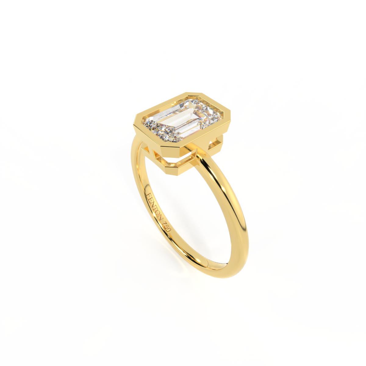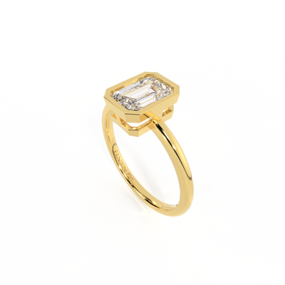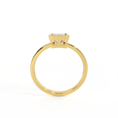 Lab Grown Solar Diamond Bezel Emerald Cut 18k Yellow Gold Ring