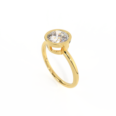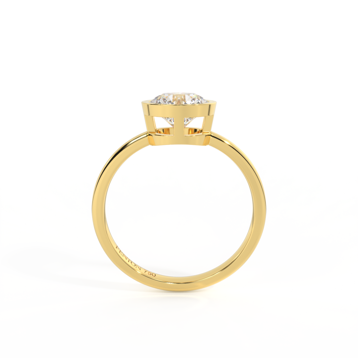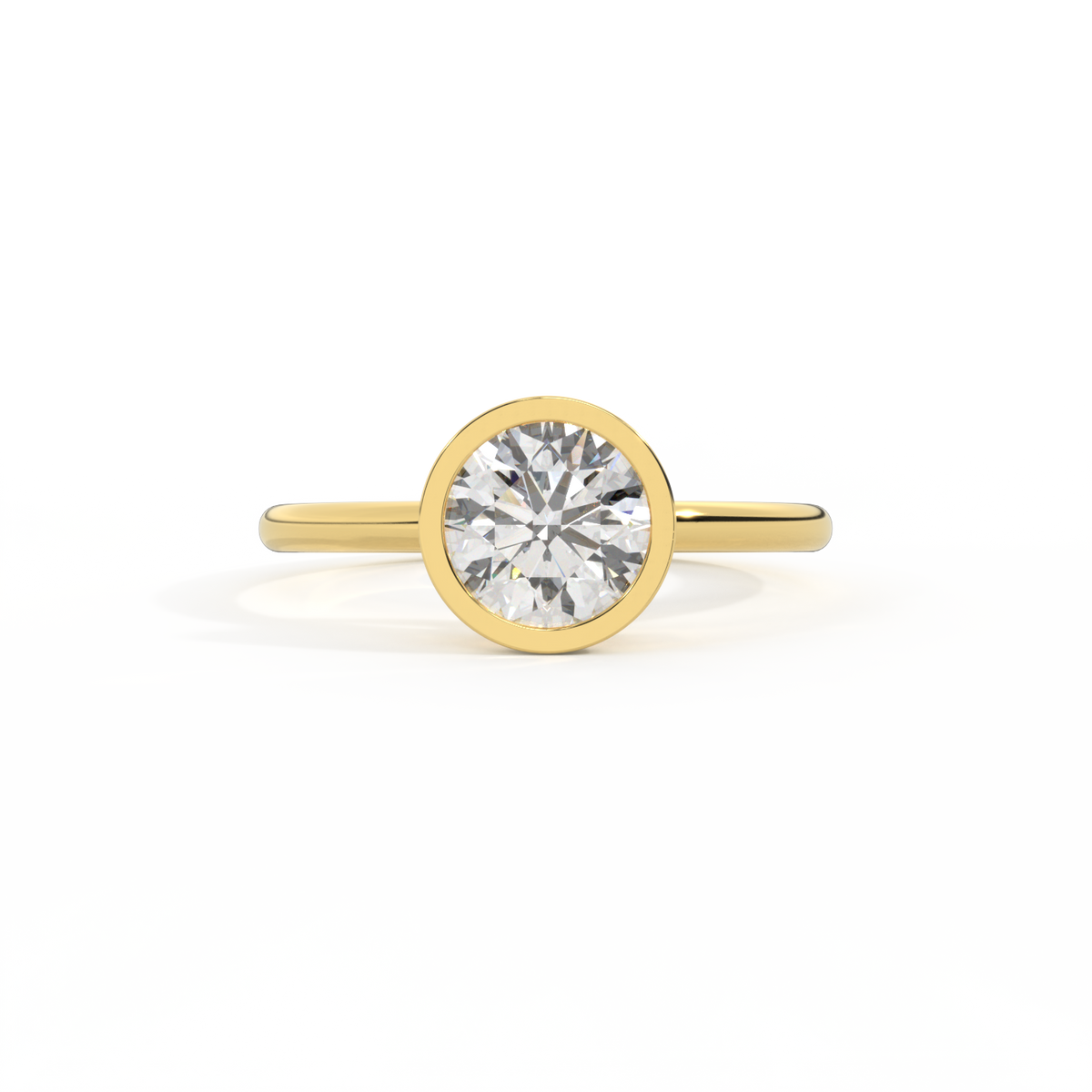 Lab Grown Solar Diamond Bezel Round Cut 18k Yellow Gold Ring