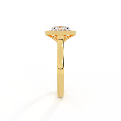 Your sparkling Solar Diamond has a GH V/S quality rating and is framed by a halo of Diamond accent stones and set in bezel style. Your 18K Yellow Gold Solar Diamond centre stone sits proudly on wed-fit shoulders to allow your wedding band to sit flush.