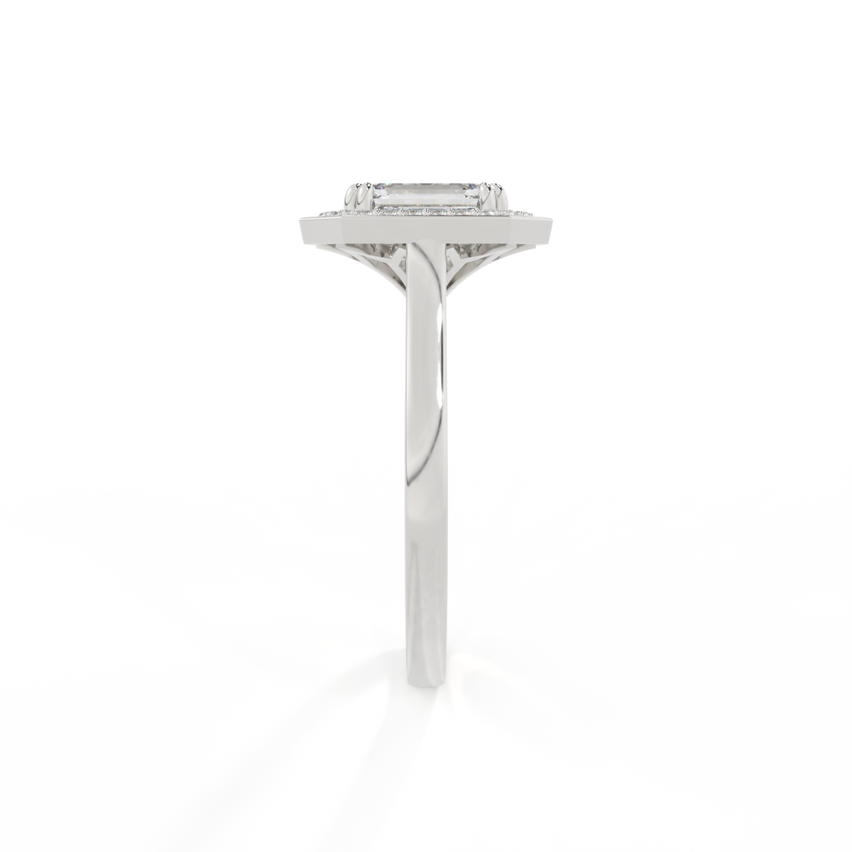 Lab Grown Solar Diamond Deco Emerald Cut Diamond Platinum Ring