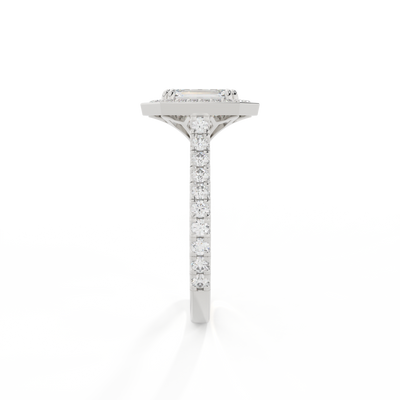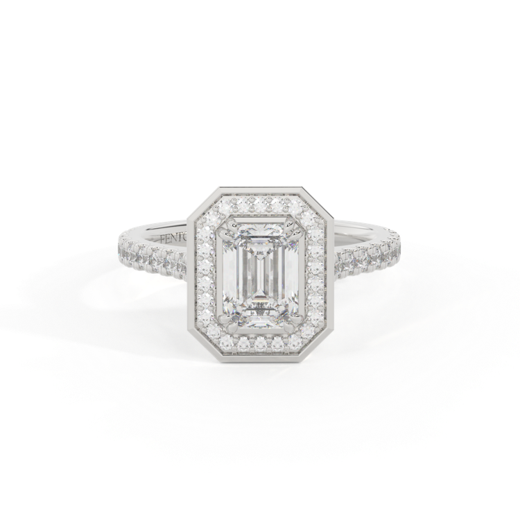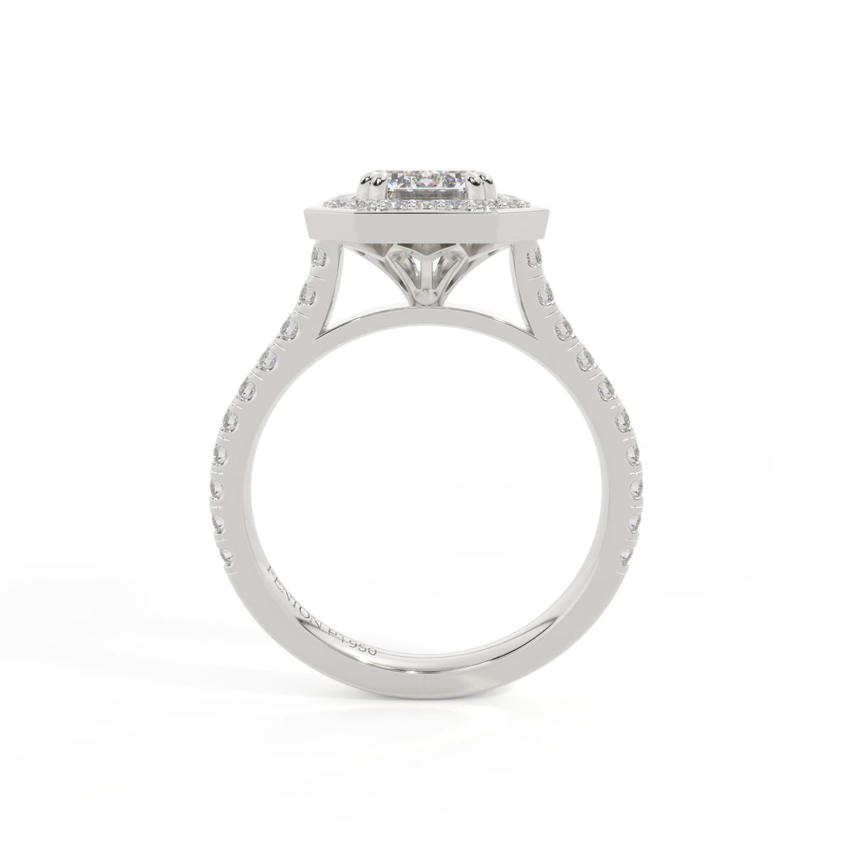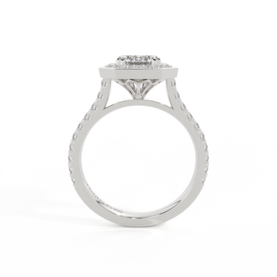 Your sparkling Solar Diamond has a GH V/S quality rating and is framed by a halo of Diamond accent stones and set in bezel style. Your Platinum Solar Diamond centre stone sits proudly on wed-fit shoulders to allow your wedding band to sit flush.