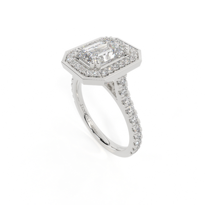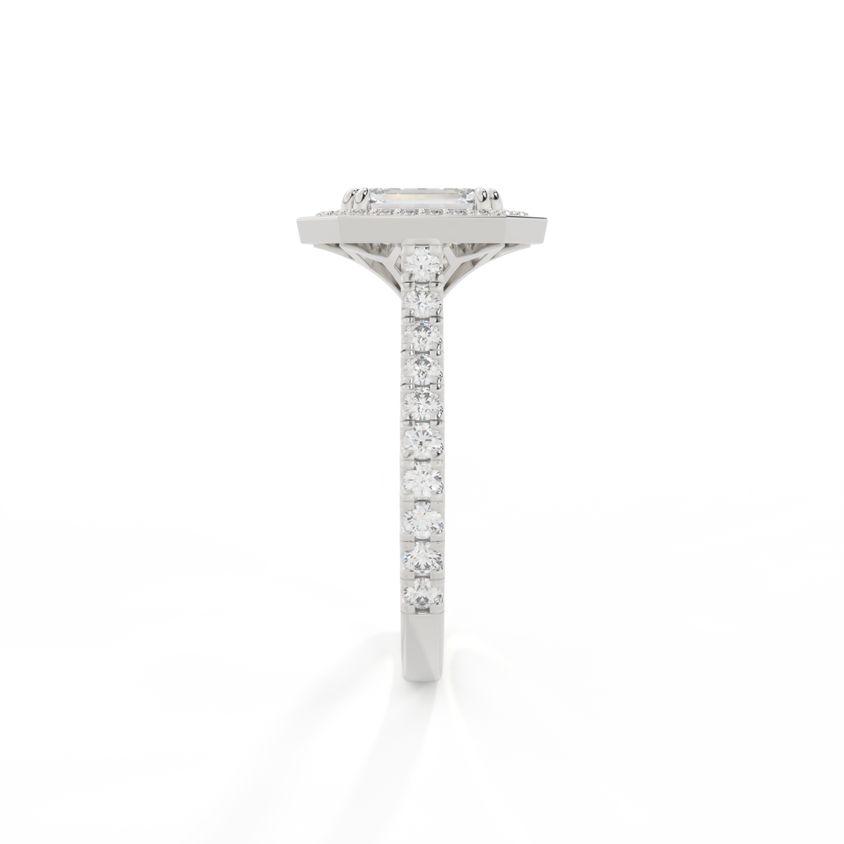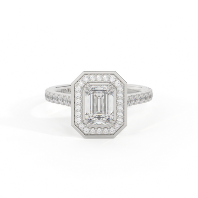 Lab Grown Solar Diamond Deco Emerald Cut Diamond Platinum Ring