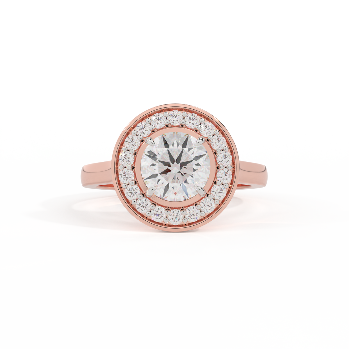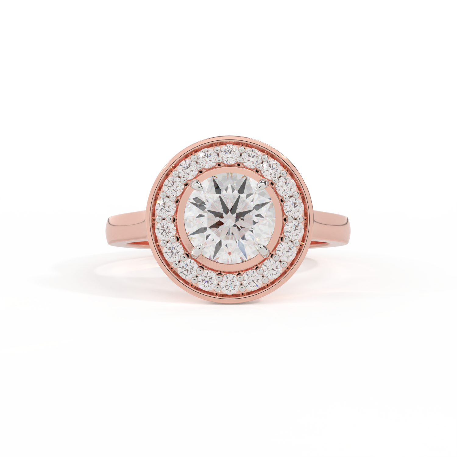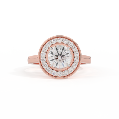 Lab Grown Solar Diamond Deco Round Cut Diamond 18k Rose Gold Ring