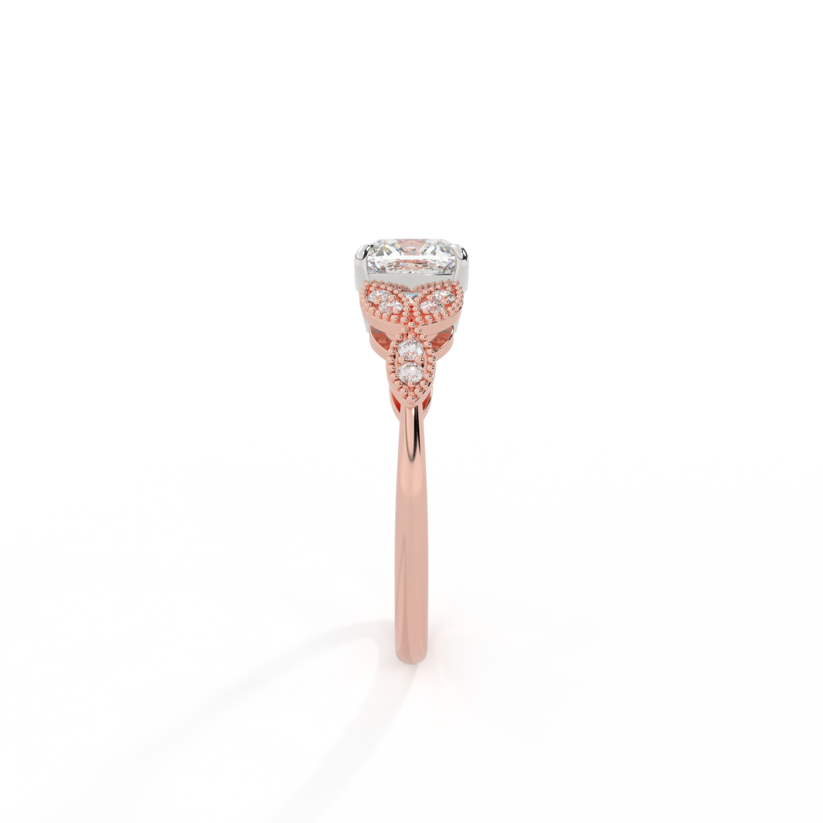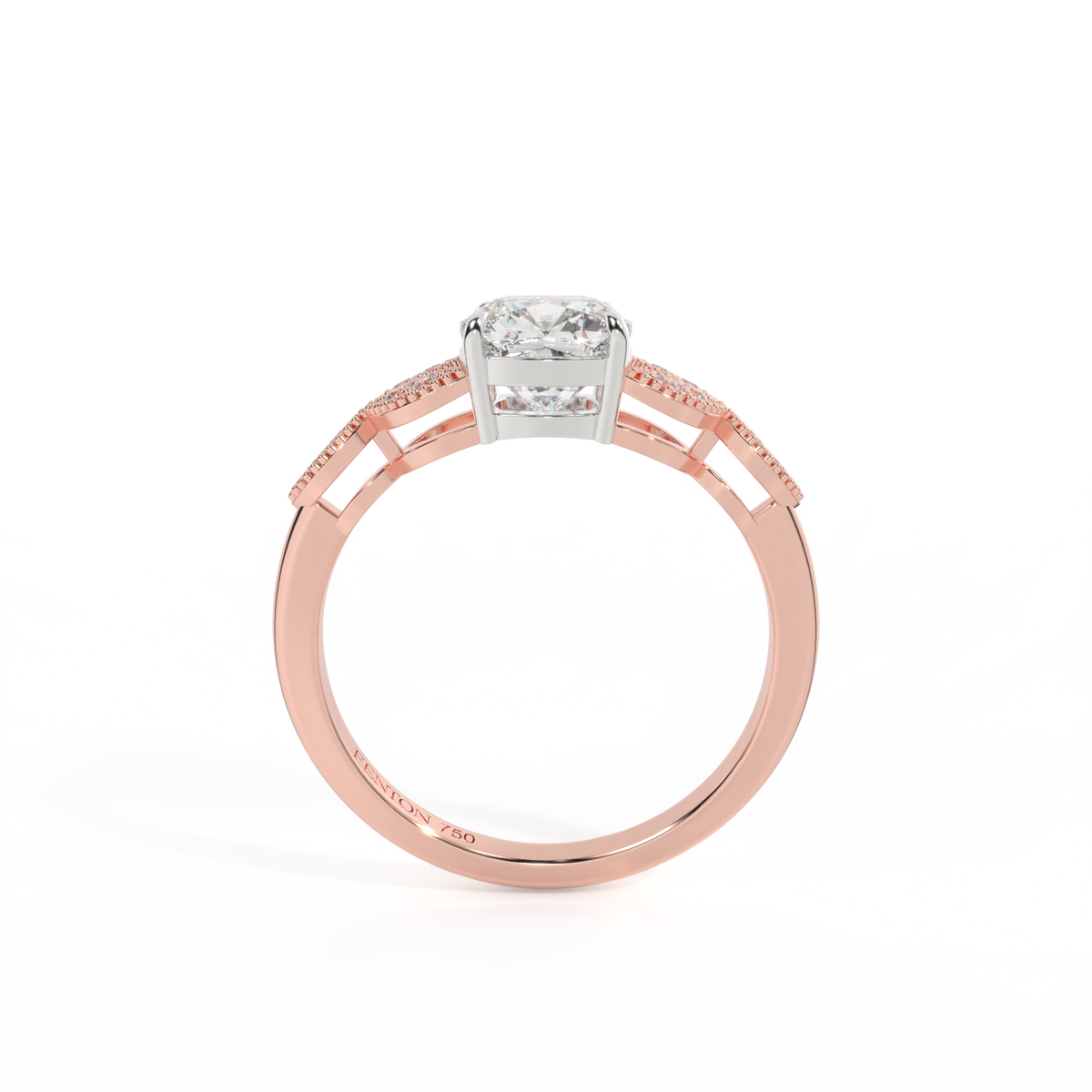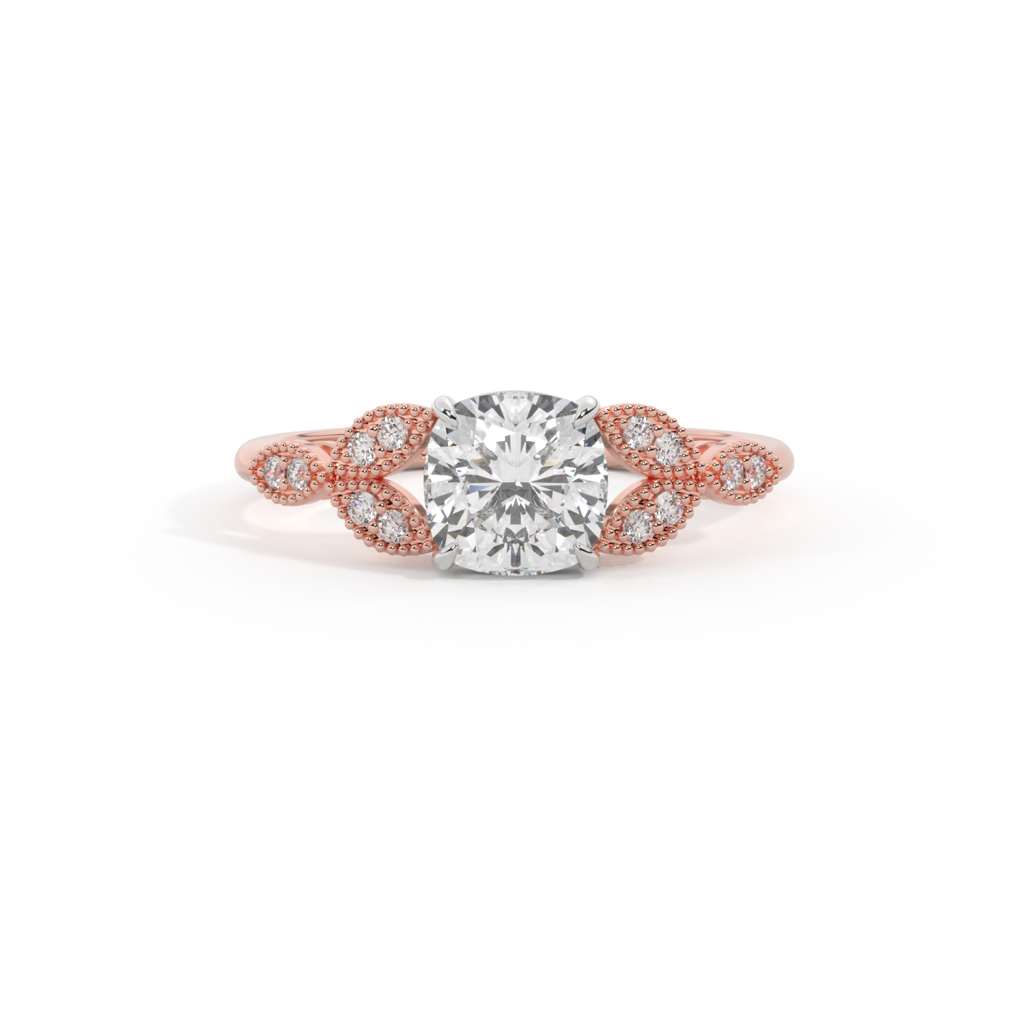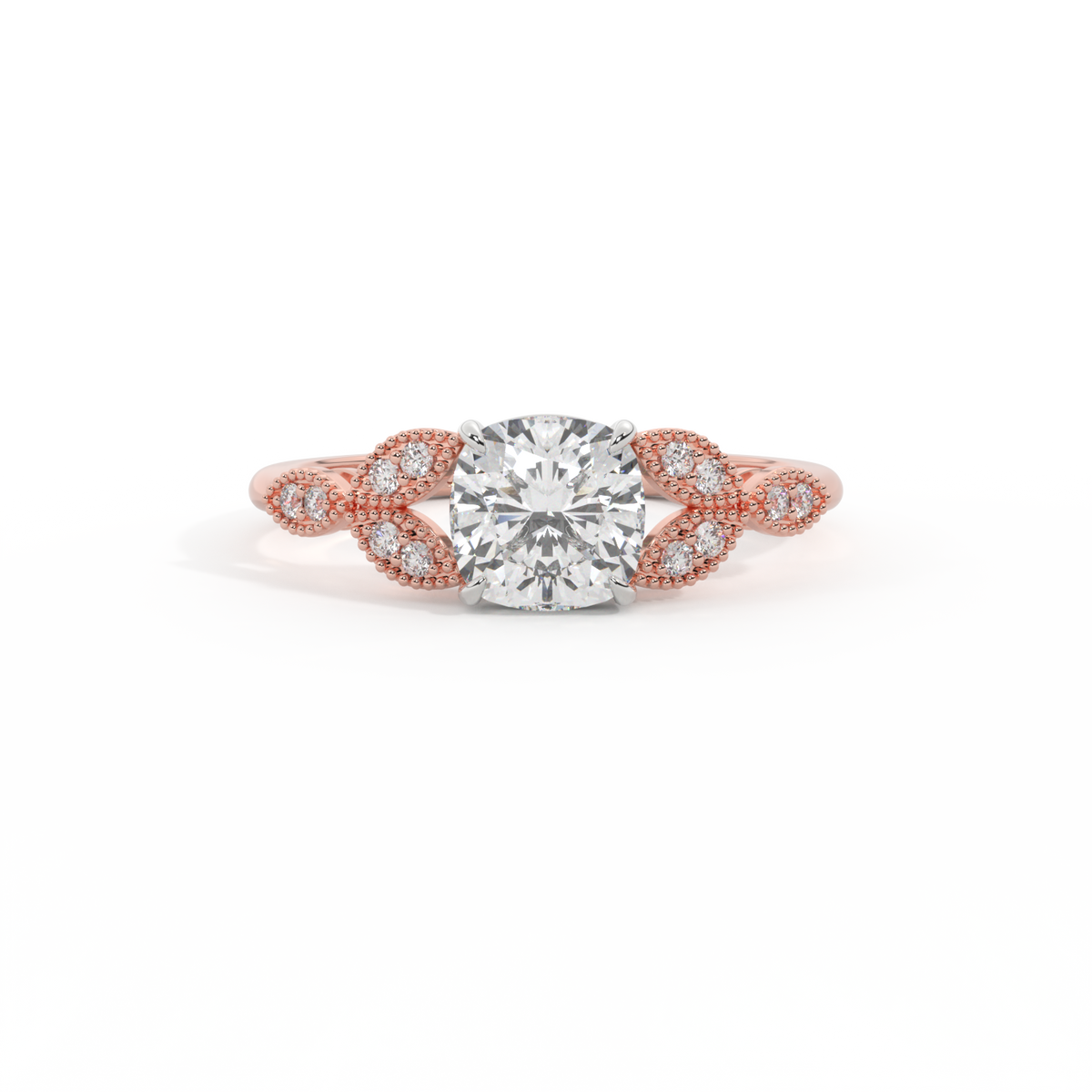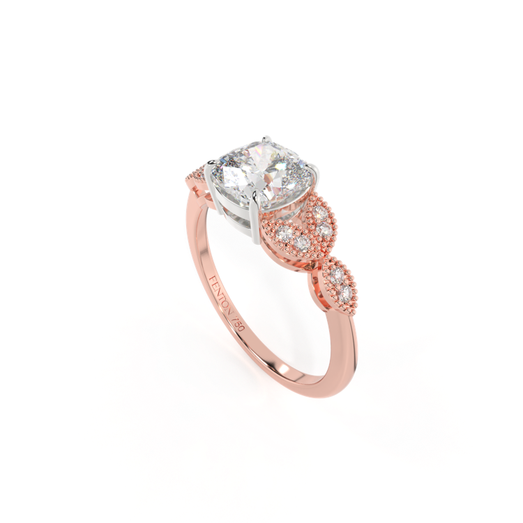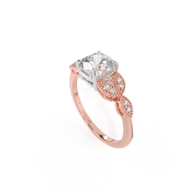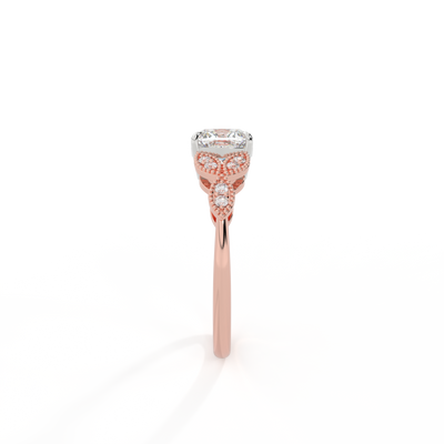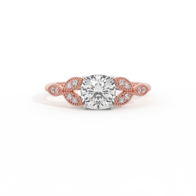Lab Grown Solar Diamond Floral Cushion Cut Diamond 18k Rose Gold Ring