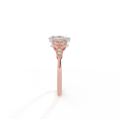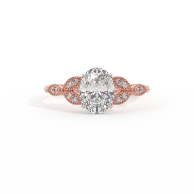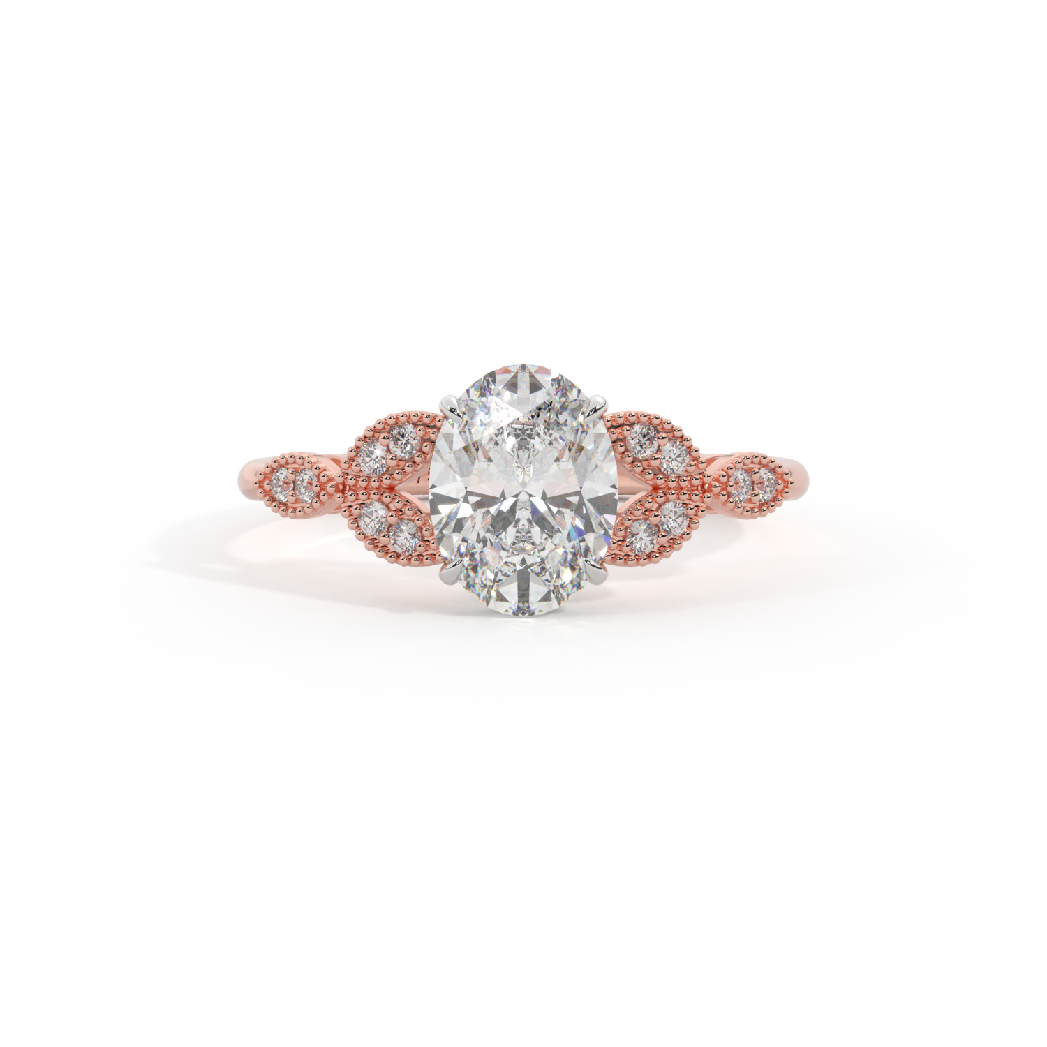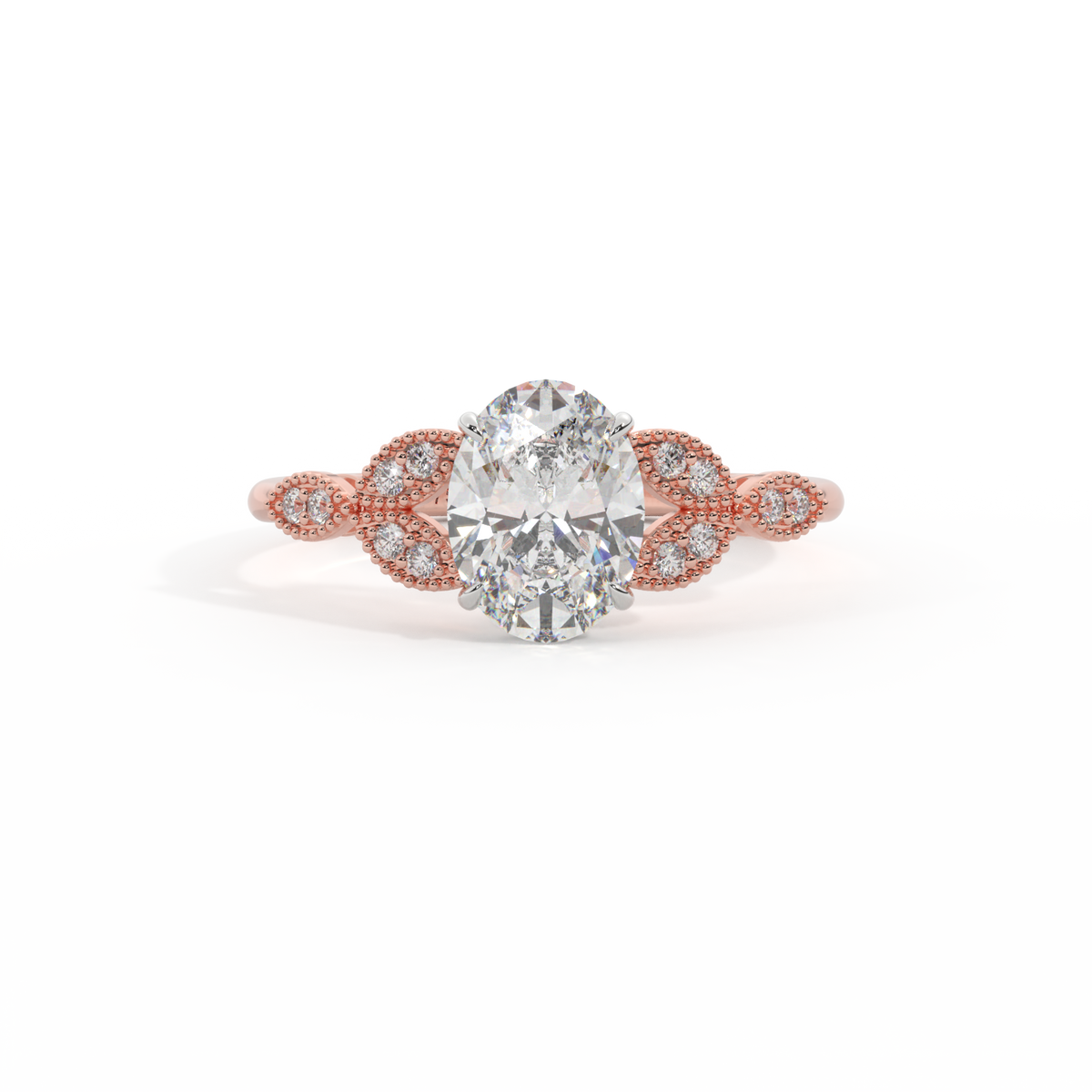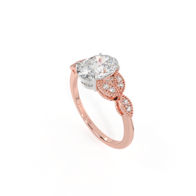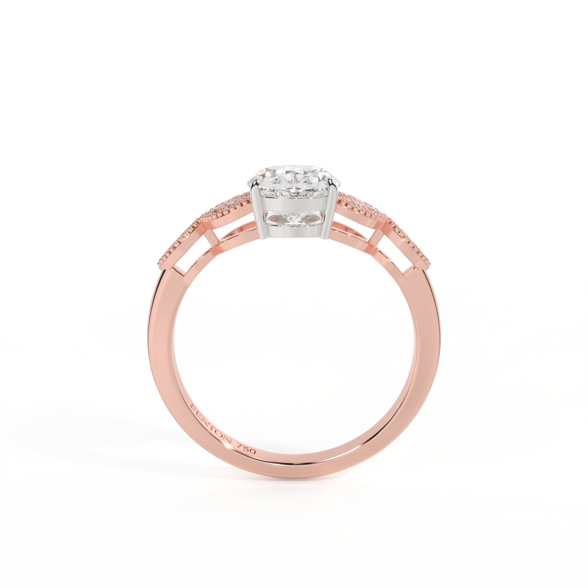 Lab Grown Solar Diamond Floral Oval Cut Diamond 18k Rose Gold Ring