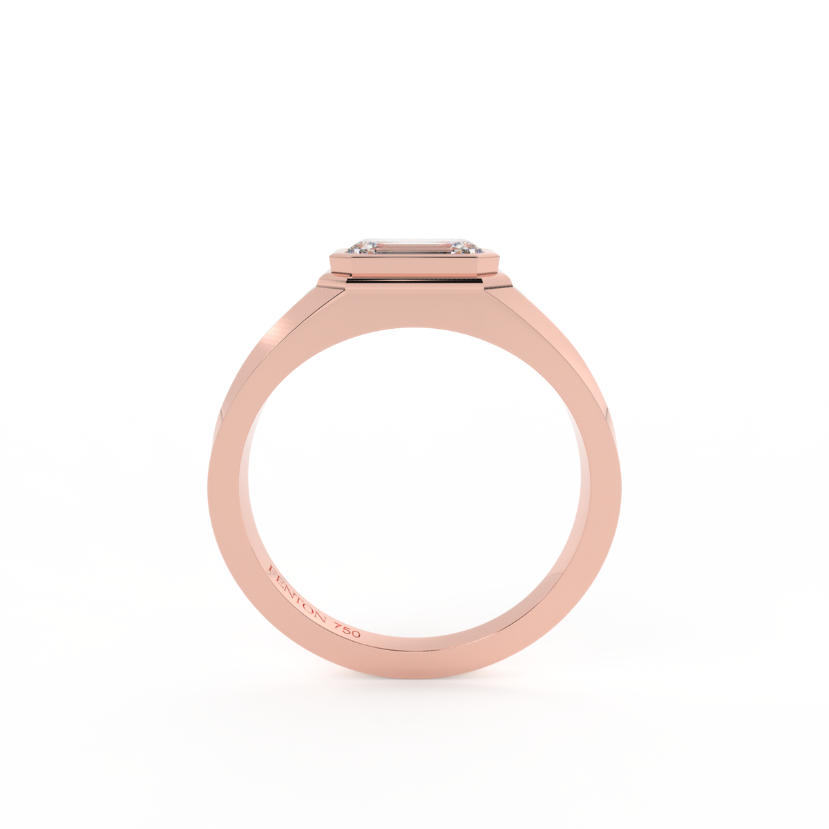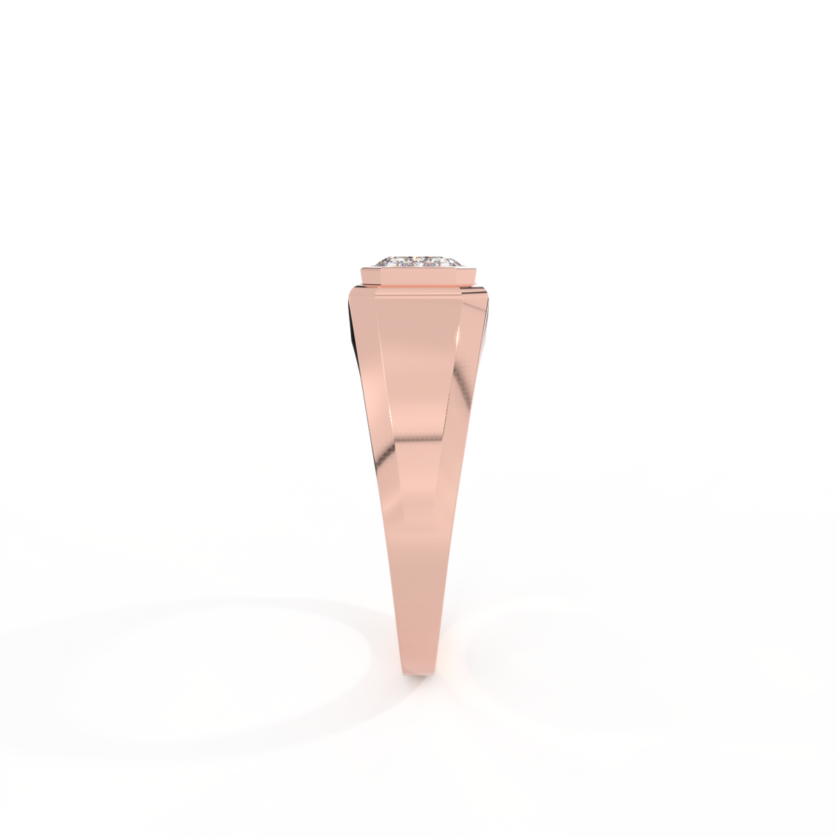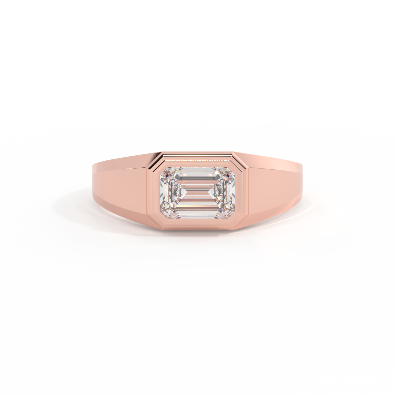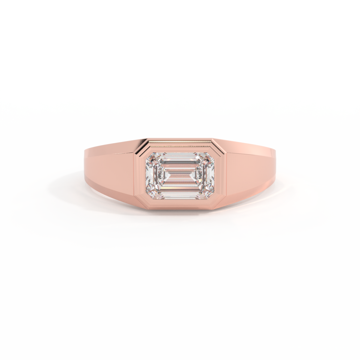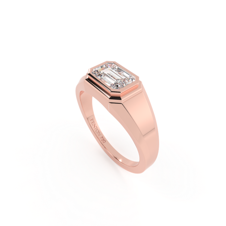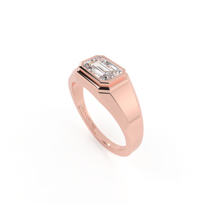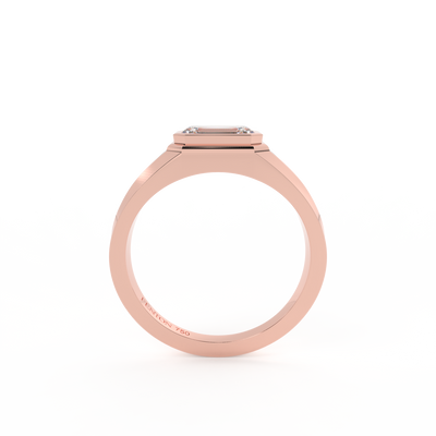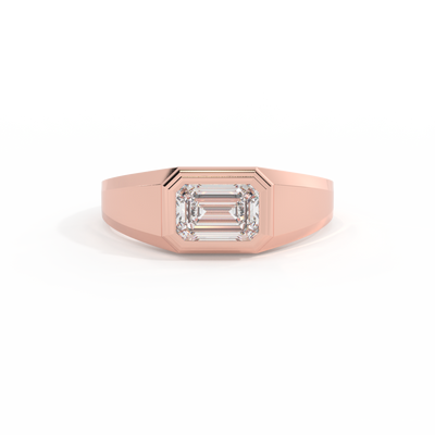 Lab Grown Solar Diamond Signet Emerald Cut 18k Rose Gold Ring