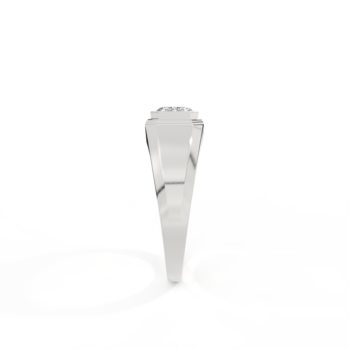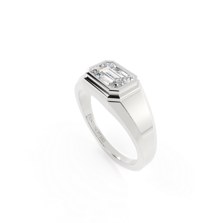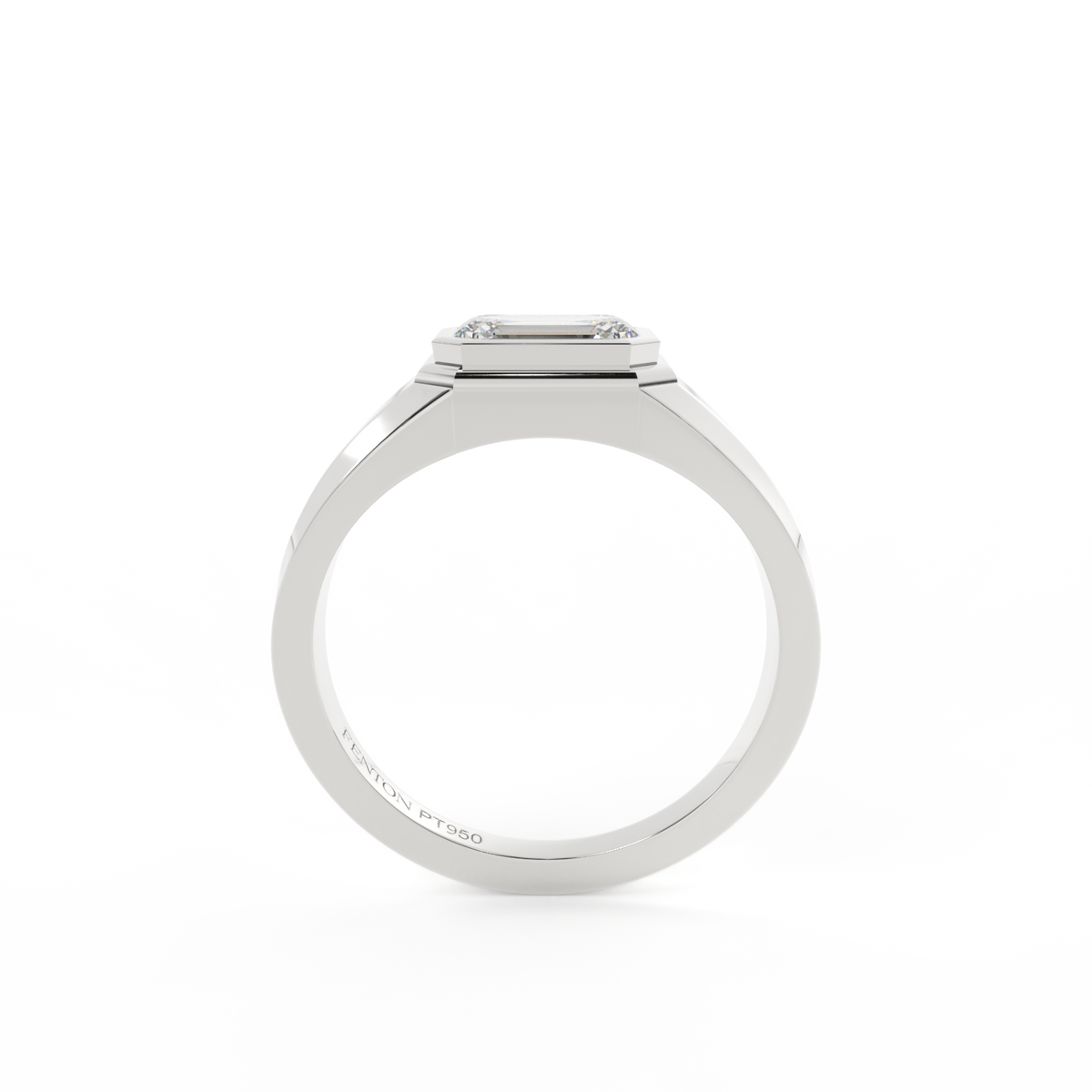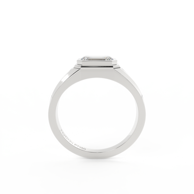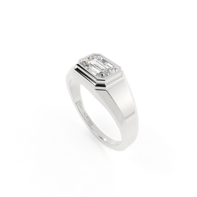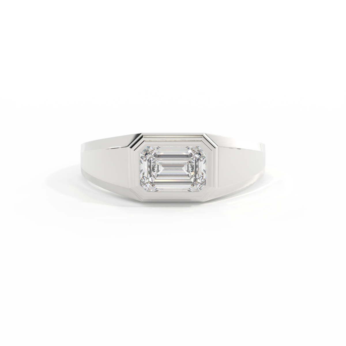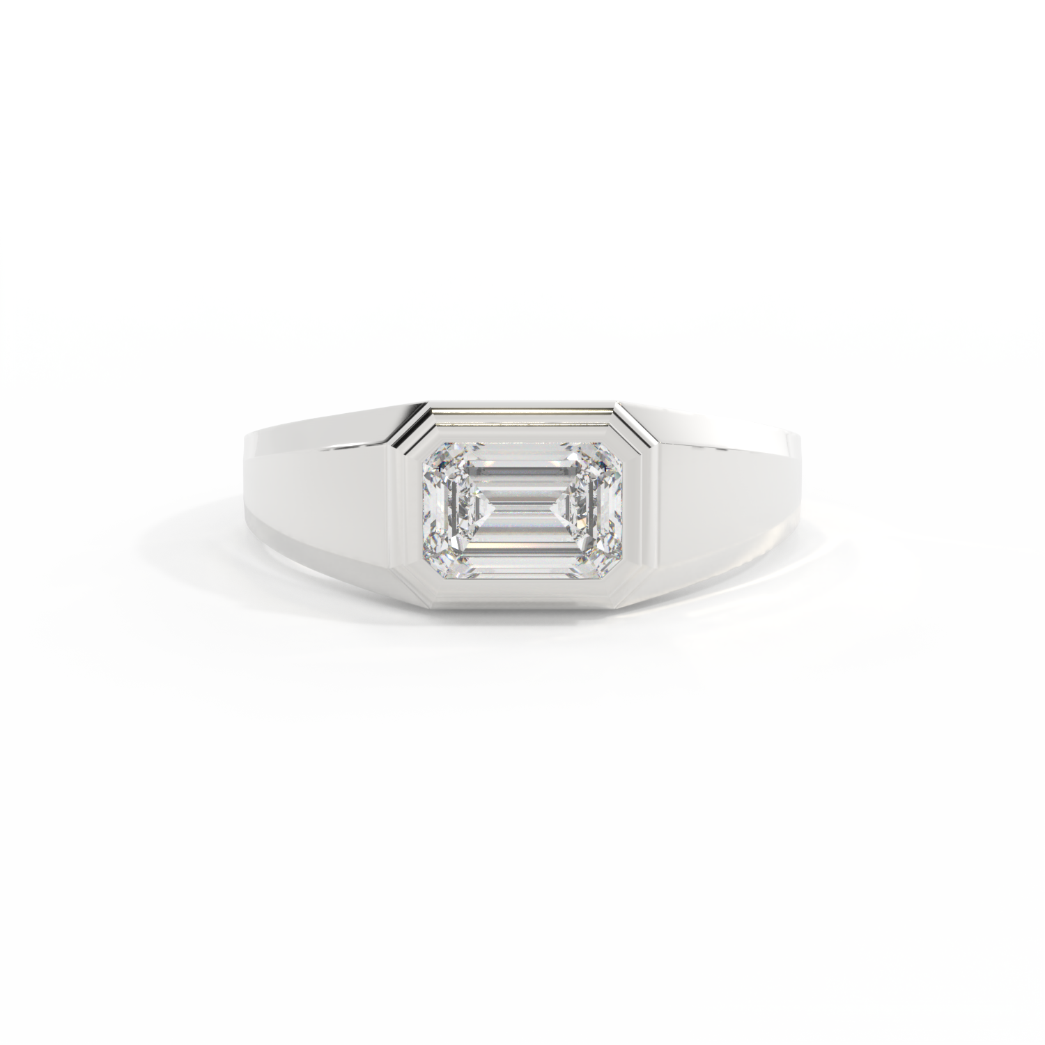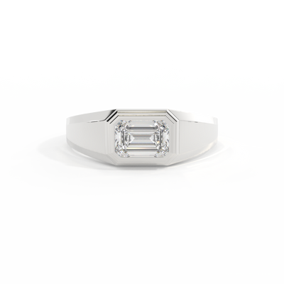 Lab Grown Solar Diamond Signet Emerald Cut 18K White Gold Ring