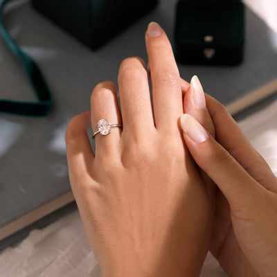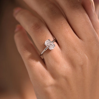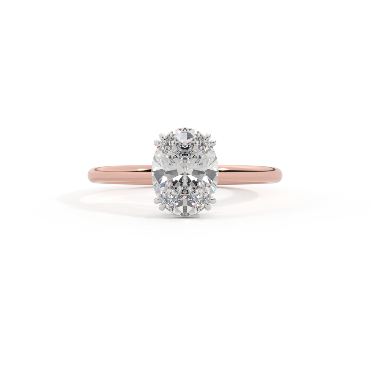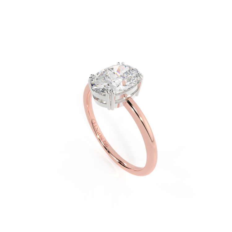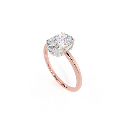 Lab Grown Solar Diamond Solitaire Oval Cut 18k Rose Gold Ring