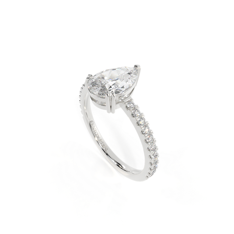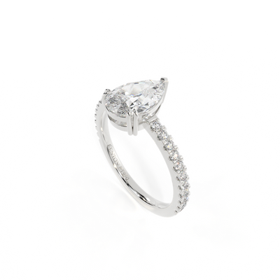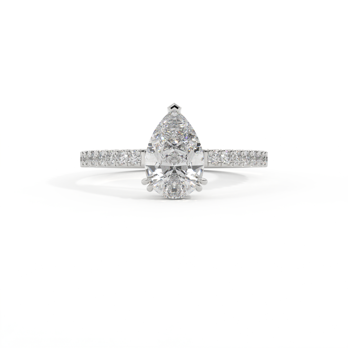 Lab Grown Solar Diamond Solitaire Pear Cut Platinum Ring