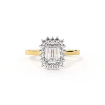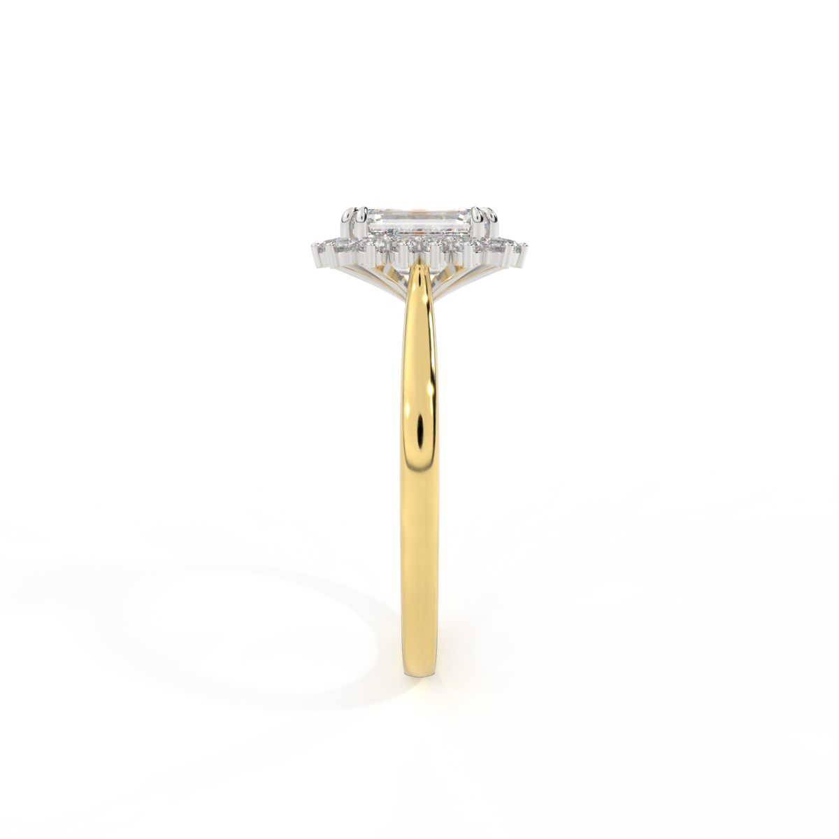 Lab Grown Solar Diamond Star Emerald Cut Diamond 18k Yellow Gold Ring