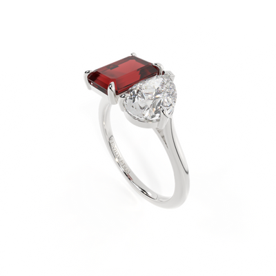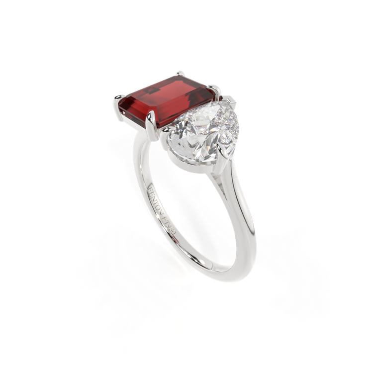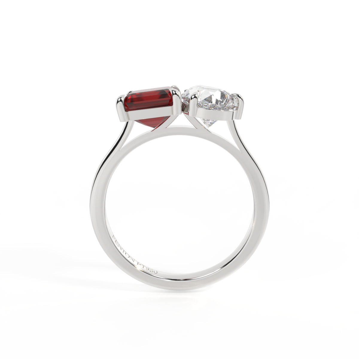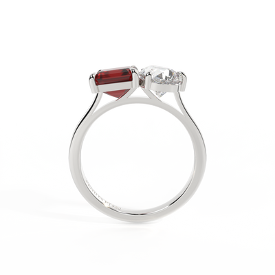 Lab Grown Solar Diamond Toi Et Moi Emerald Garnet Platinum Ring