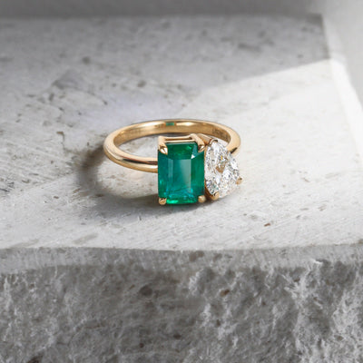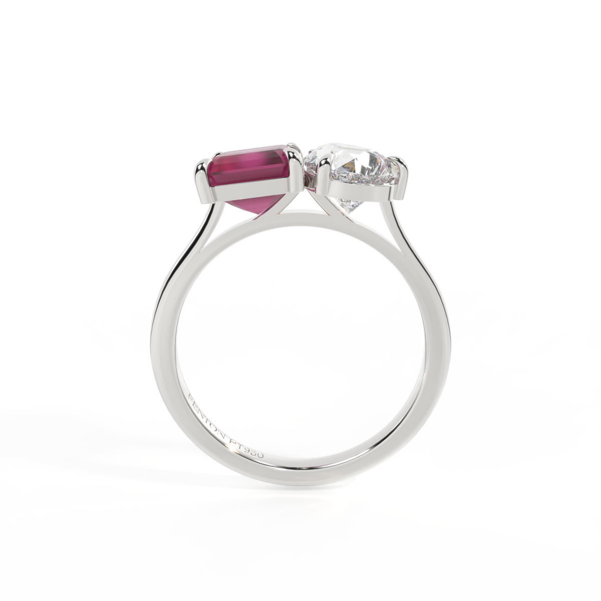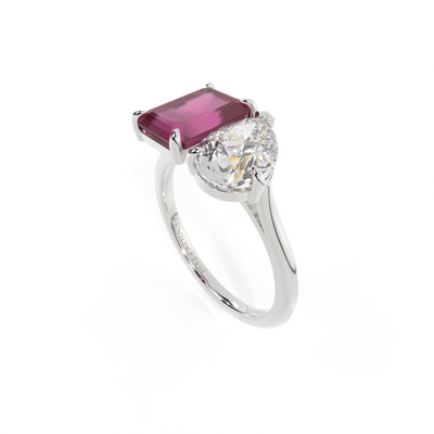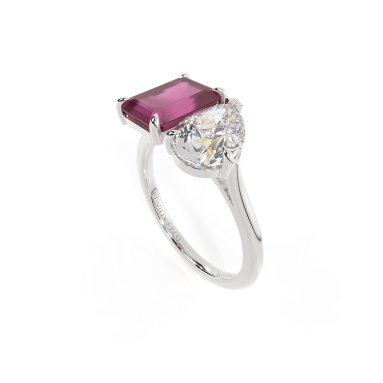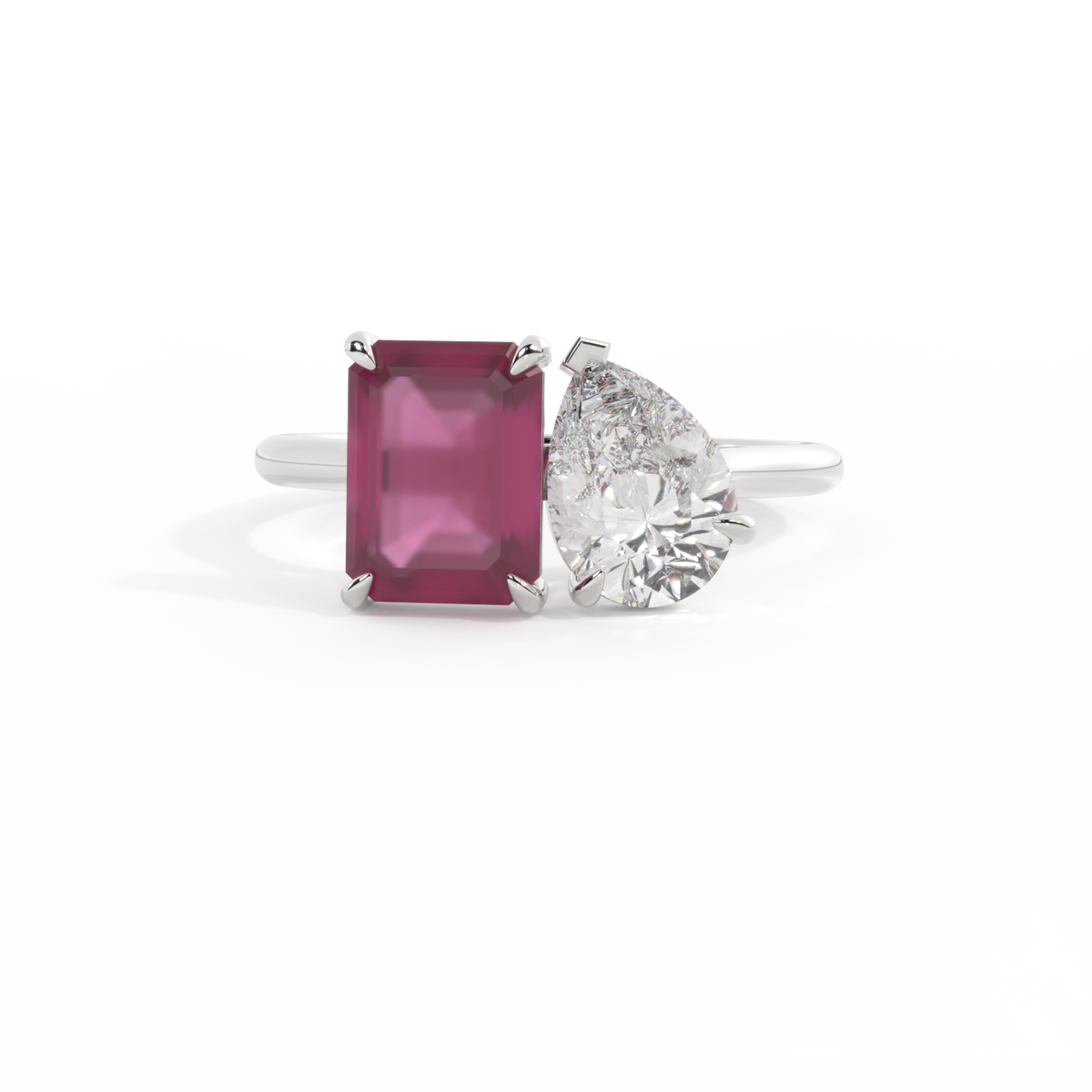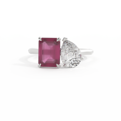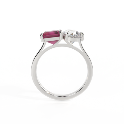 Lab Grown Solar Diamond Toi Et Moi Emerald Ruby Platinum Ring