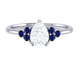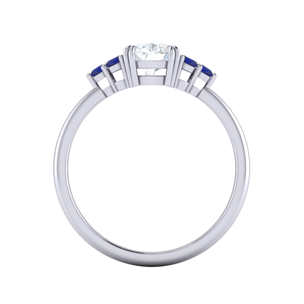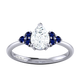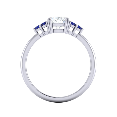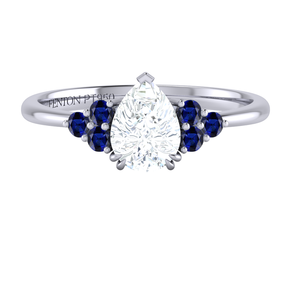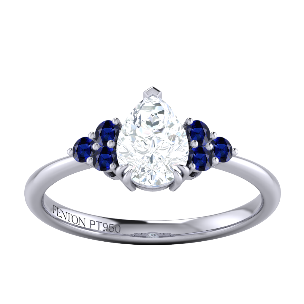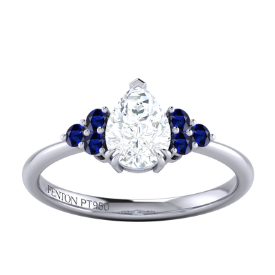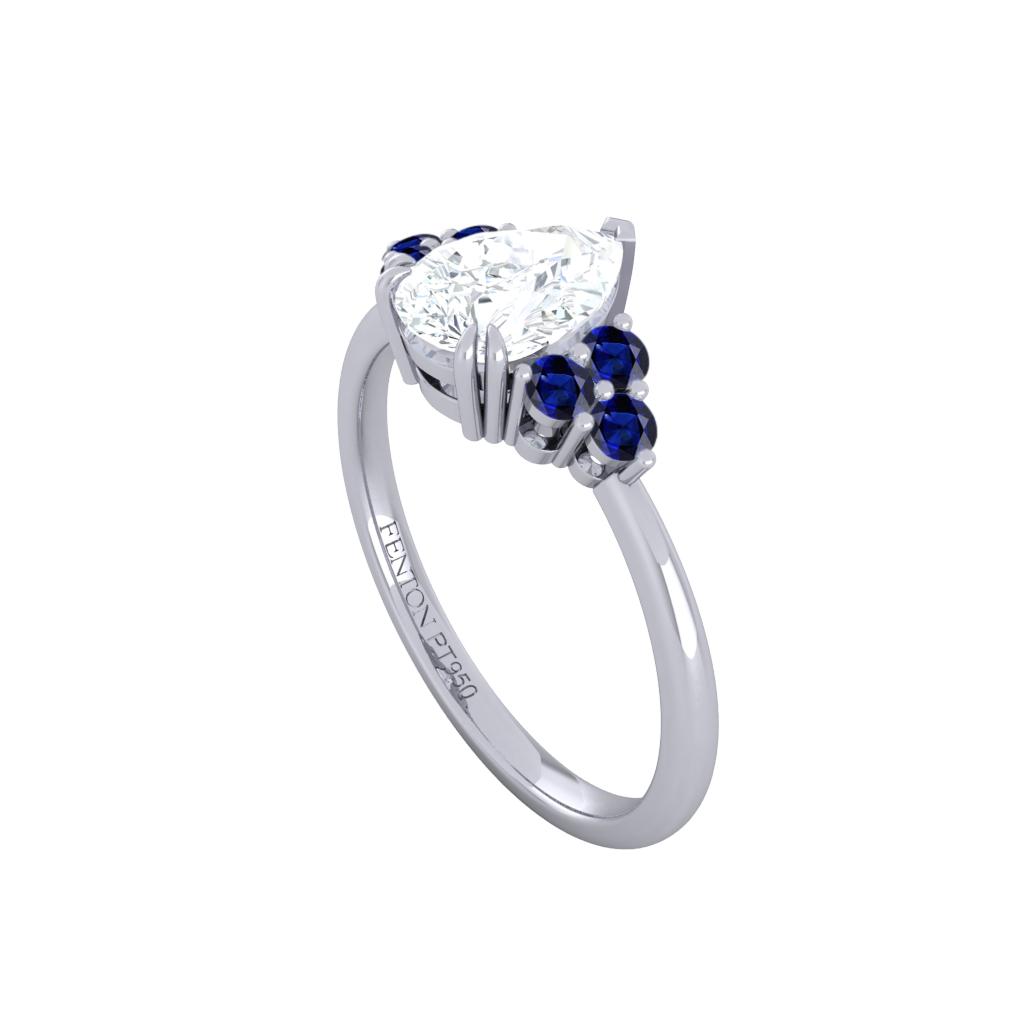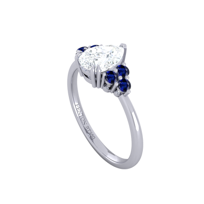 Lab Grown Solar Diamond Trefoil Pear Cut Diamond and Blue Sapphire Platinum Ring