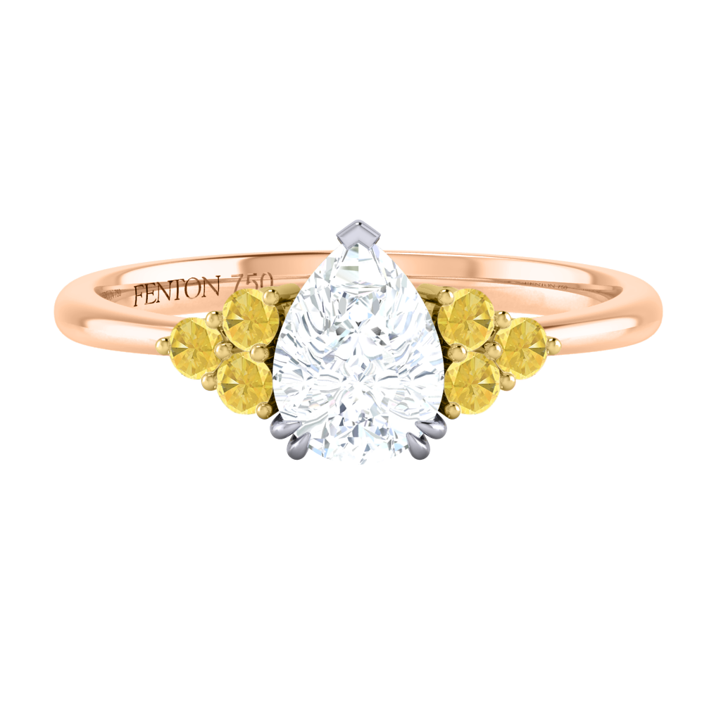 Lab Grown Solar Diamond Trefoil Pear Cut Diamond and Yellow Sapphire 18k Rose Gold Ring