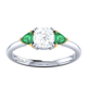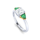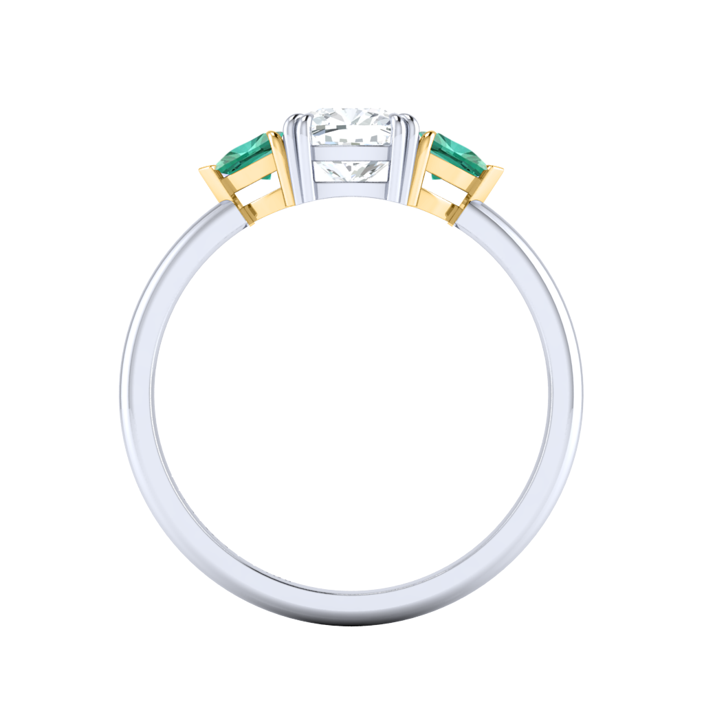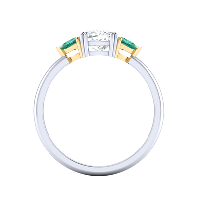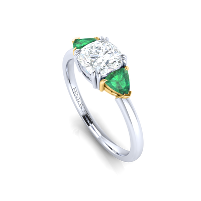 Lab Grown Solar Diamond Trilogy Cushion Cut Diamond and Emerald Platinum Ring