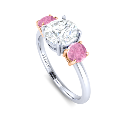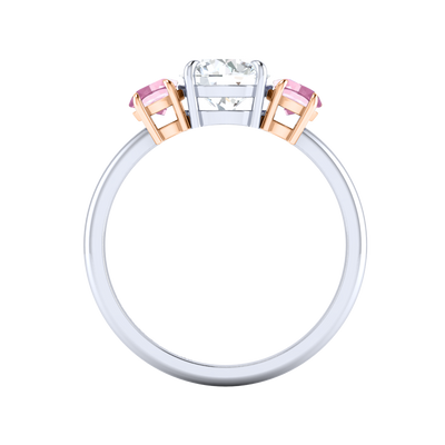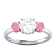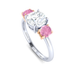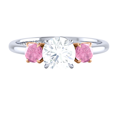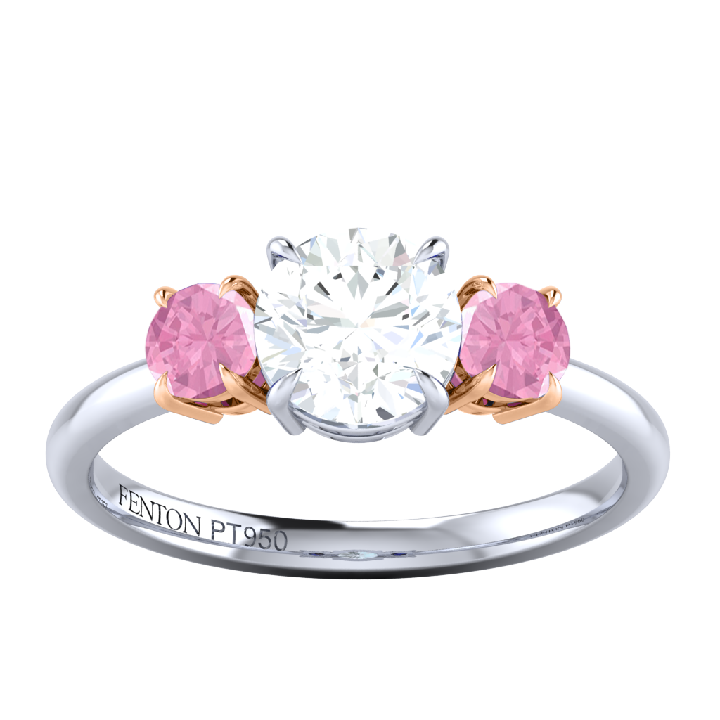Lab Grown Solar Diamond Trilogy Round Cut Diamond and Pink Sapphire Platinum Ring