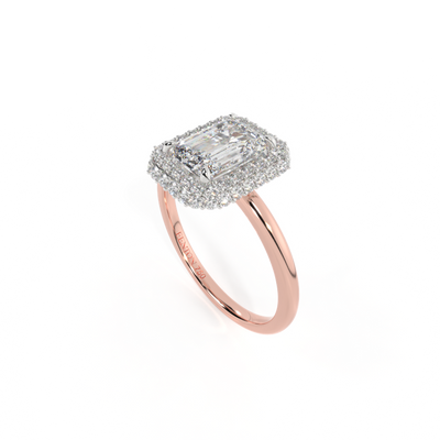 Lab Grown Solar Diamond Vintage Emerald Cut Diamond 18k Rose Gold Ring