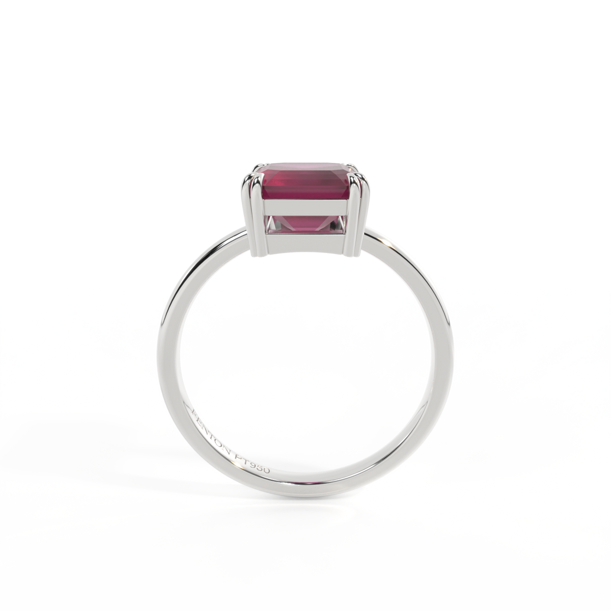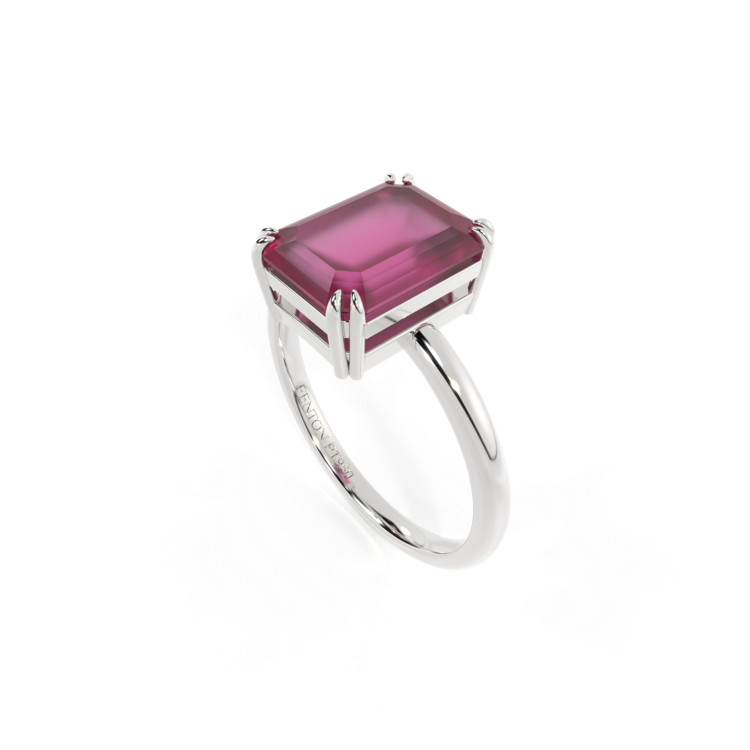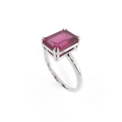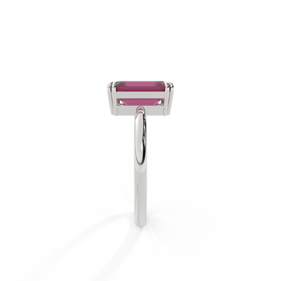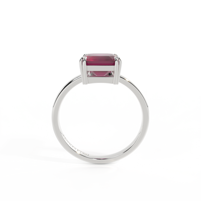 All of our rings are available in blue sapphire, ruby, emerald, pink sapphire, yellow sapphire, garnet and aquamarine. We offer three metals, 18K rose gold, 18K yellow gold and platinum. The centre stones are available in four cuts, round, cushion, oval and emerald cut and five sizes for each cut and style.