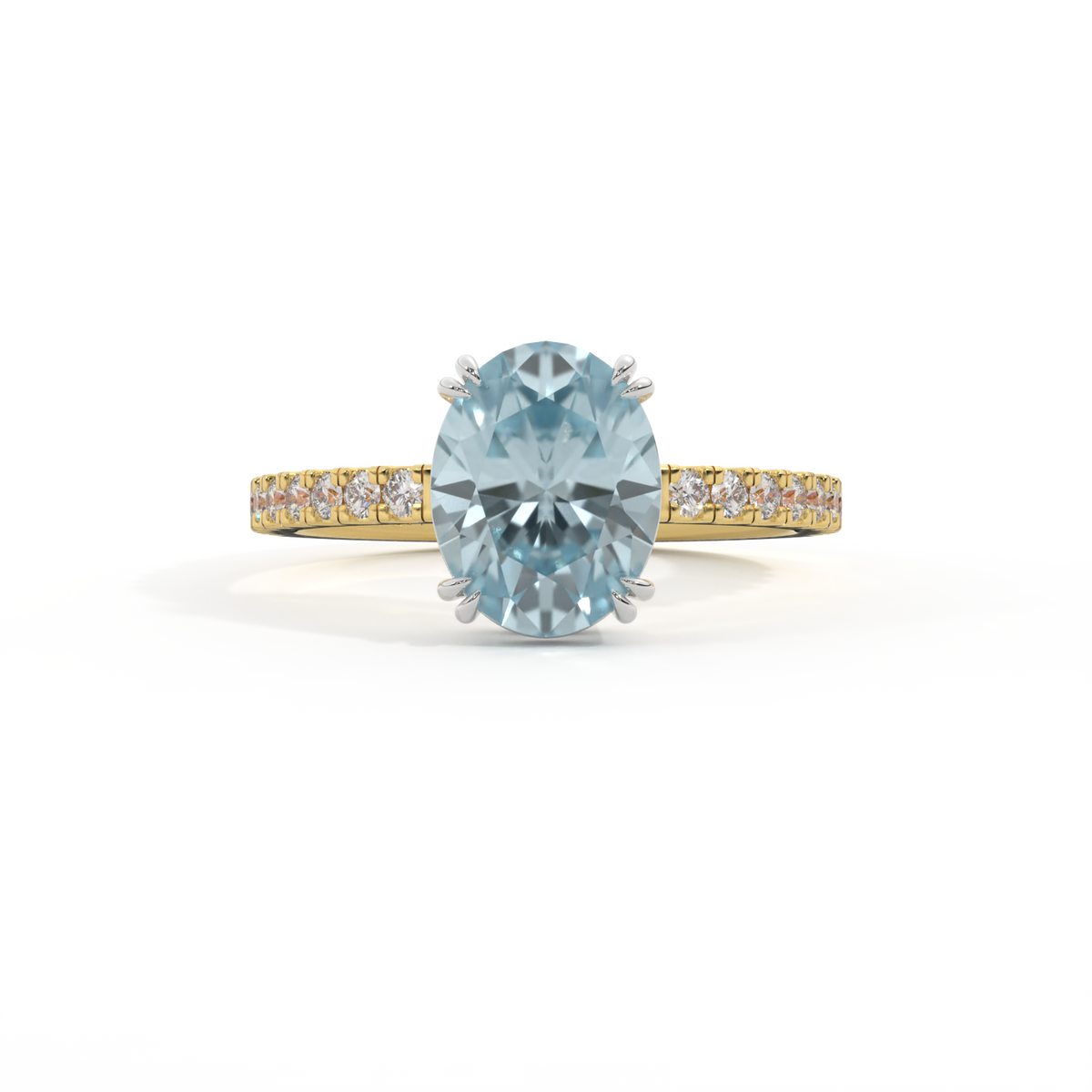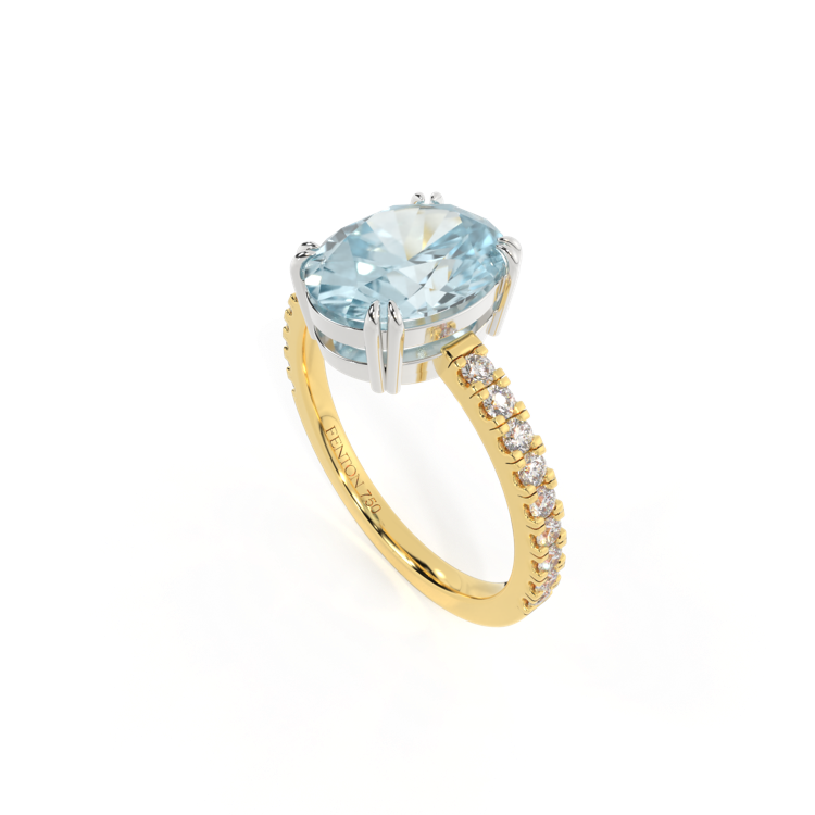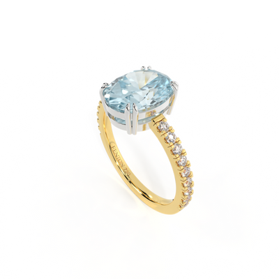 Solitaire Oval Aquamarine 18K Yellow Gold Ring