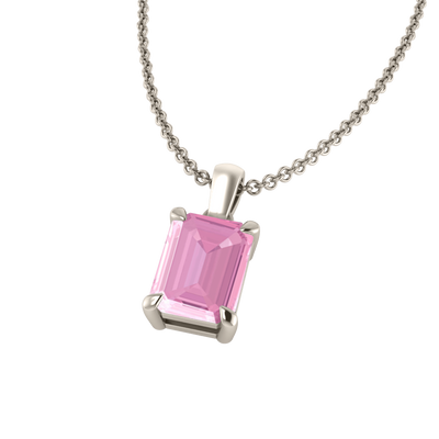 The Solitaire Pendant Necklace is a sparkling favourite, combining timelessness with a colourful twist. The Emerald cut Pink Sapphire pendant elegantly swings on a solid, recycled 18K White Gold chain measuring 18 inches and adjustable to a shorter 16 inch length.