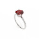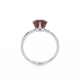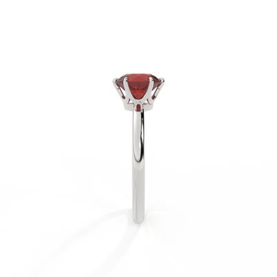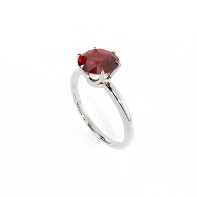 All of our rings are available in blue sapphire, ruby, emerald, pink sapphire, yellow sapphire, garnet and aquamarine. We offer three metals, 18K rose gold, 18K yellow gold and platinum. The centre stones are available in four cuts, round, cushion, oval and emerald cut and five sizes for each cut and style.