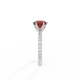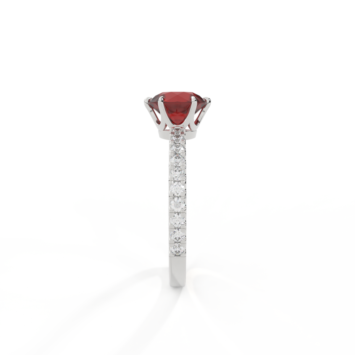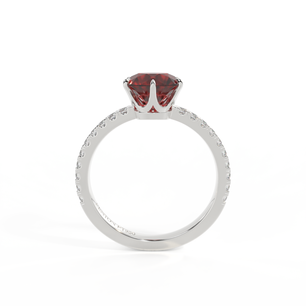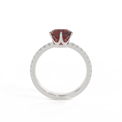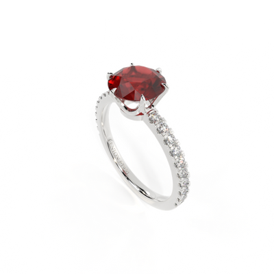 All of our rings are available in blue sapphire, ruby, emerald, pink sapphire, yellow sapphire, garnet and aquamarine. We offer three metals, 18K rose gold, 18K yellow gold and platinum. The centre stones are available in four cuts, round, cushion, oval and emerald cut and five sizes for each cut and style.