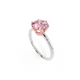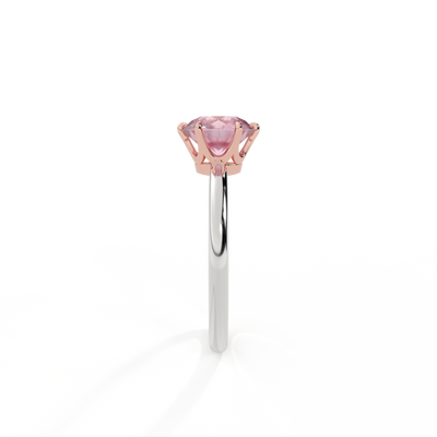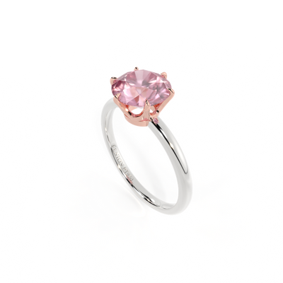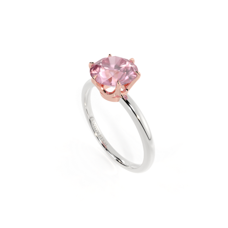 All of our rings are available in blue sapphire, ruby, emerald, pink sapphire, yellow sapphire, garnet and aquamarine. We offer three metals, 18K rose gold, 18K yellow gold and platinum. The centre stones are available in four cuts, round, cushion, oval and emerald cut and five sizes for each cut and style.