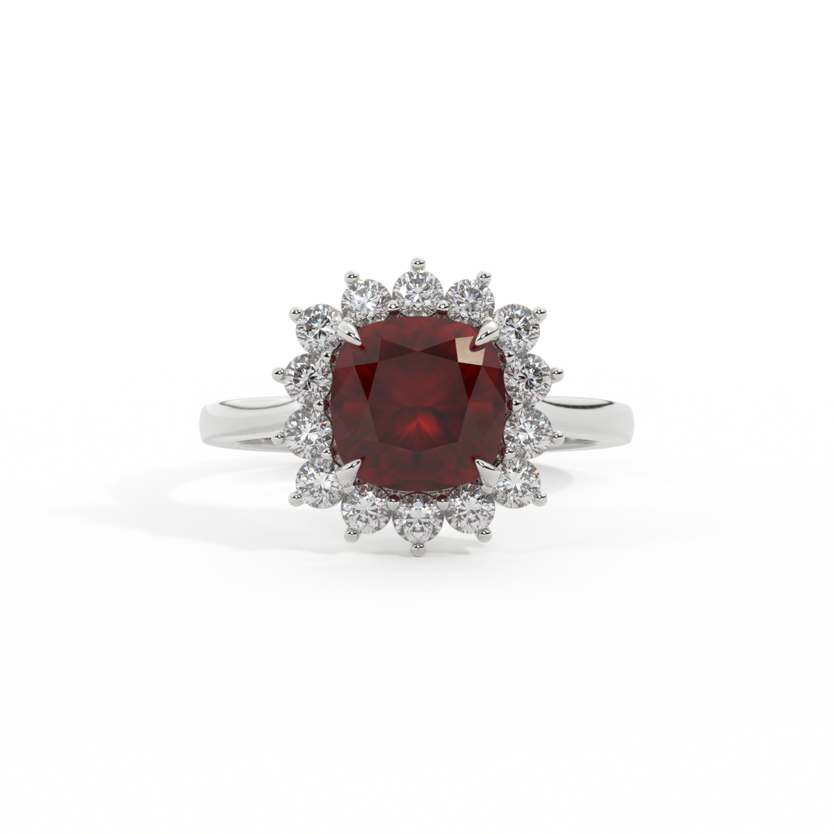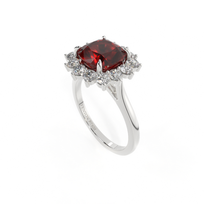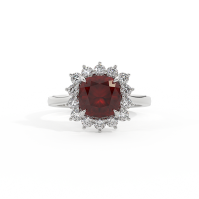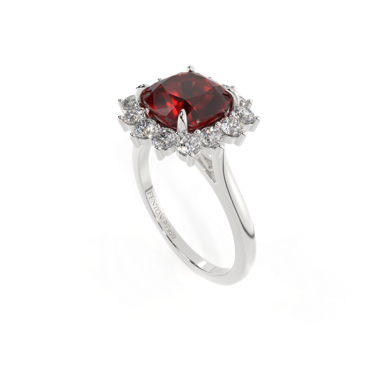 Star Cushion Garnet Platinum Ring