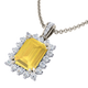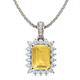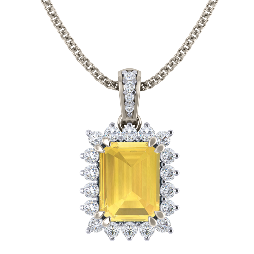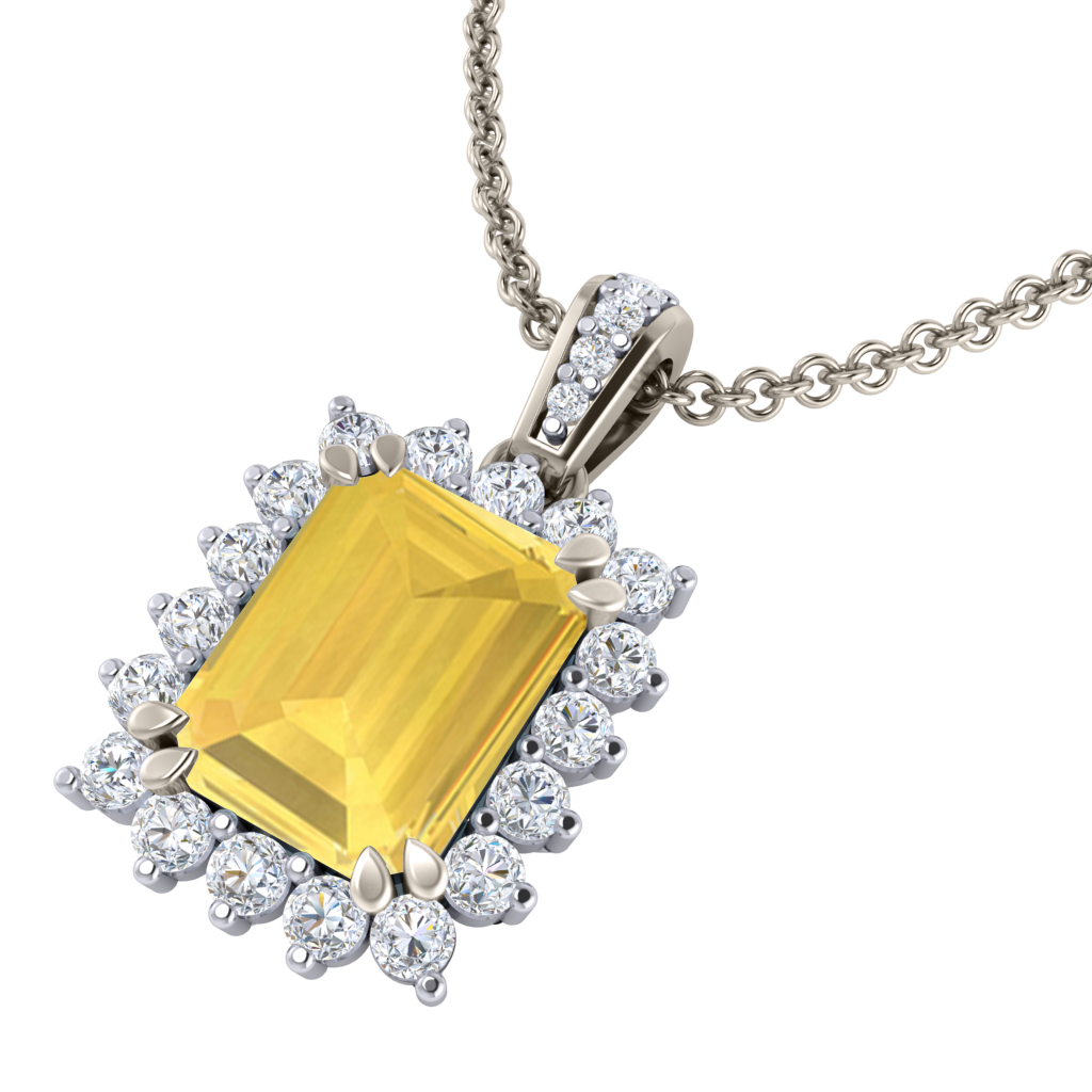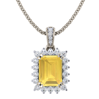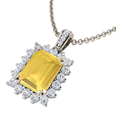 Sparkle from night to day with your Yellow Sapphire Star Pendant Necklace. This pendant necklace features a single G/H colour and VS clarity diamond halo and sparkling diamond-encrusted bale holding your Emerald cut Yellow Sapphire stone.