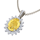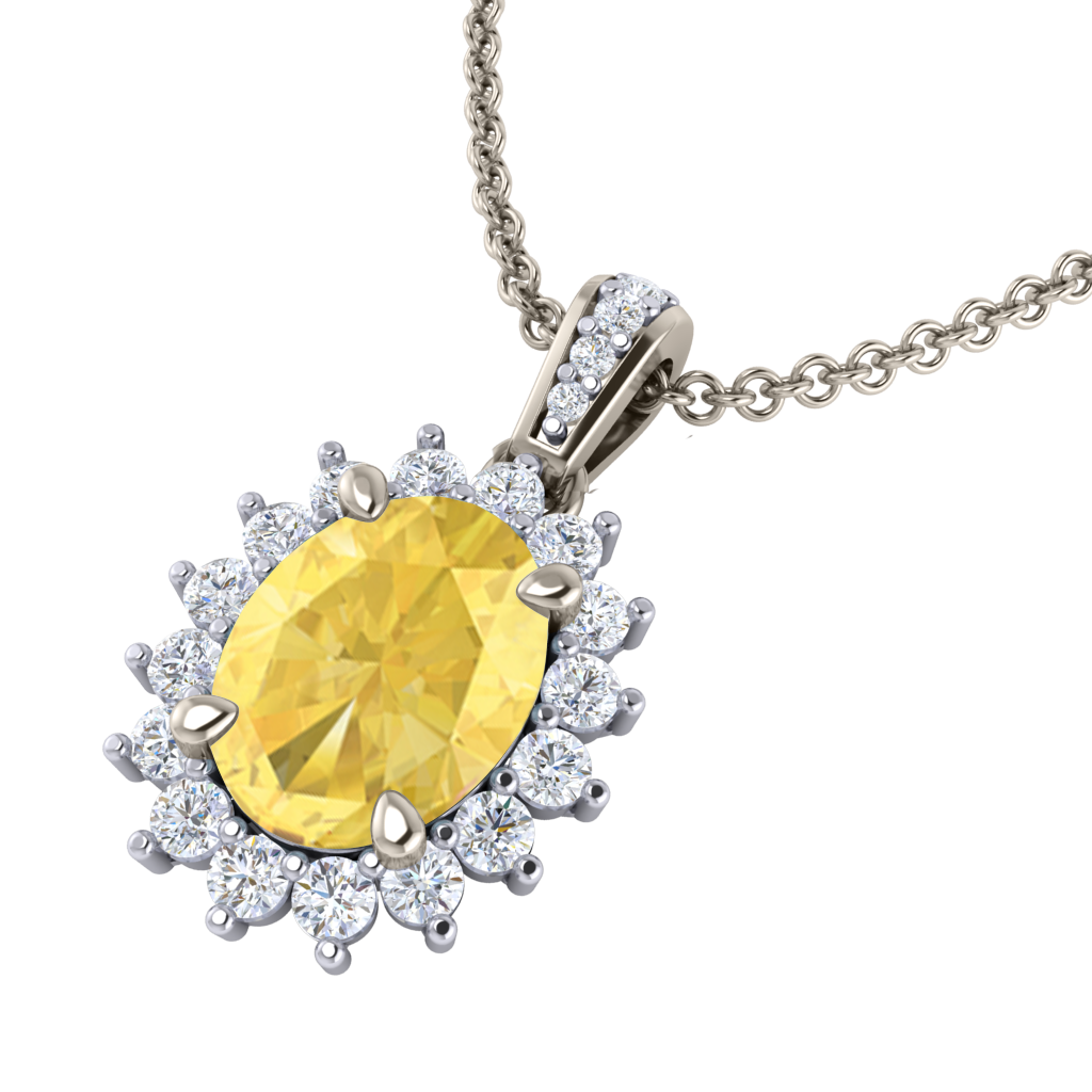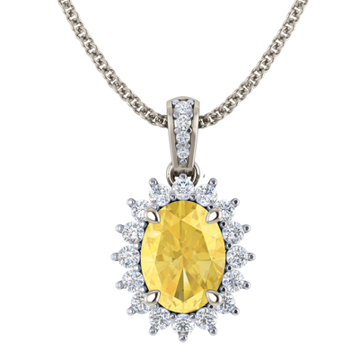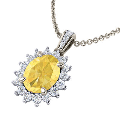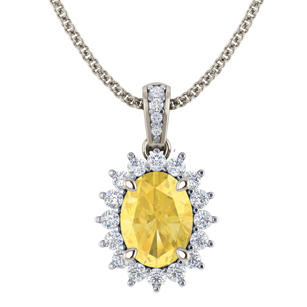 Sparkle from night to day with your Yellow Sapphire Star Pendant Necklace. This pendant necklace features a single G/H colour and VS clarity diamond halo and sparkling diamond-encrusted bale holding your Oval cut Yellow Sapphire stone.